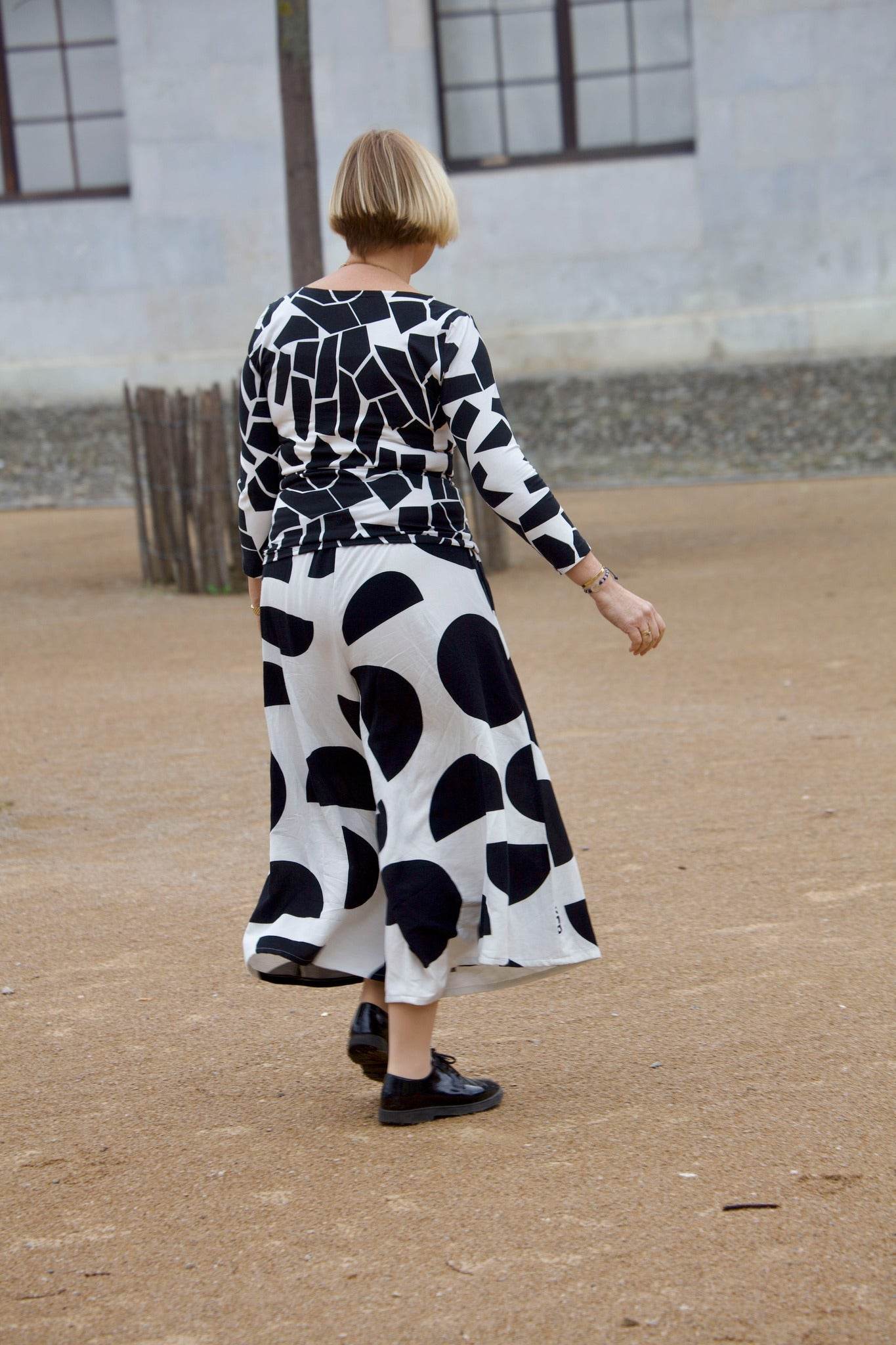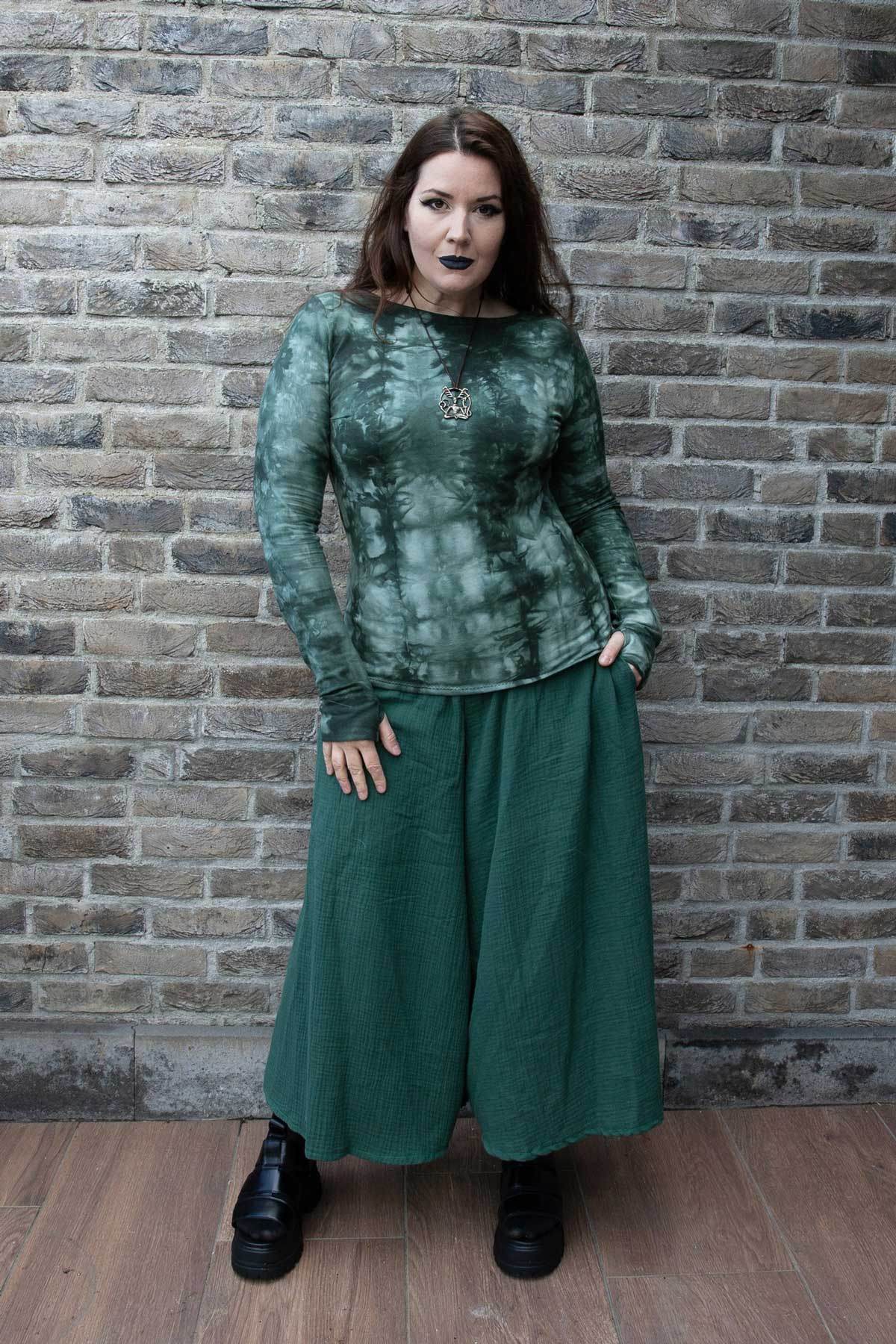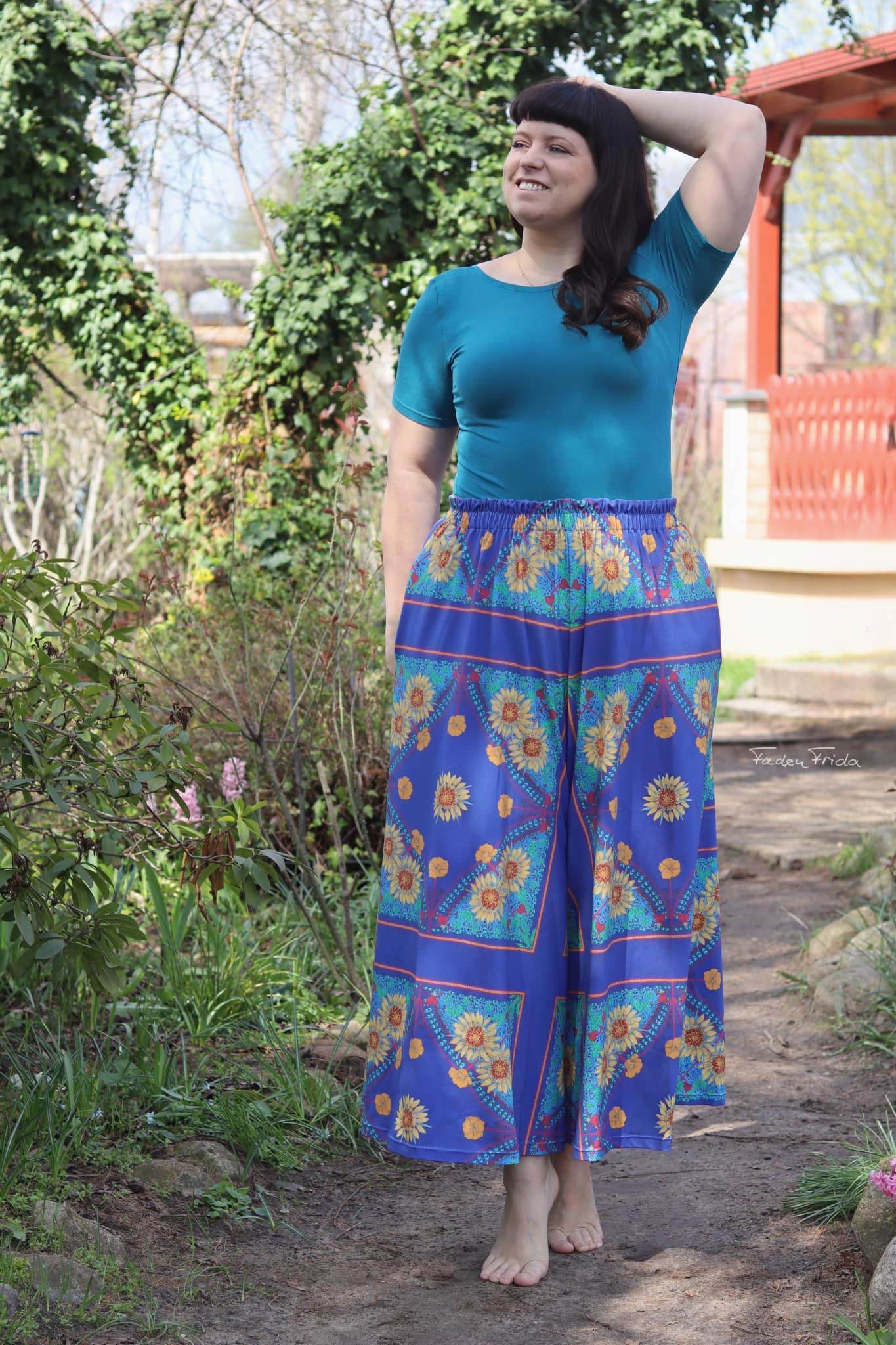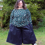 Schnittmuster zum Nähen einer bequemen, weit fallenden Culotte mit großen Nahttaschen und Gummibund