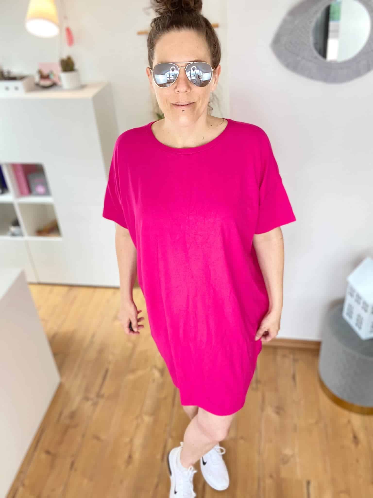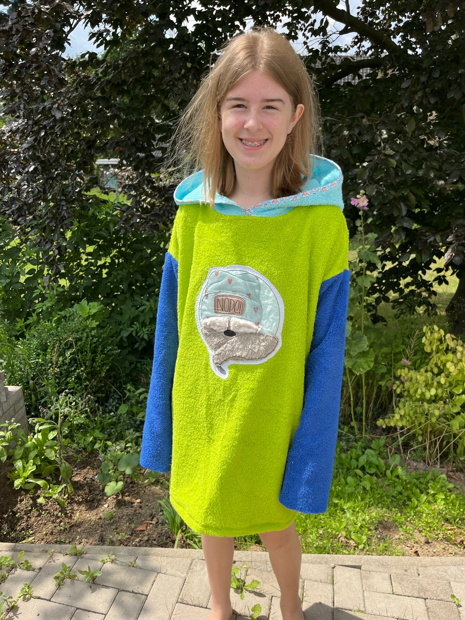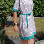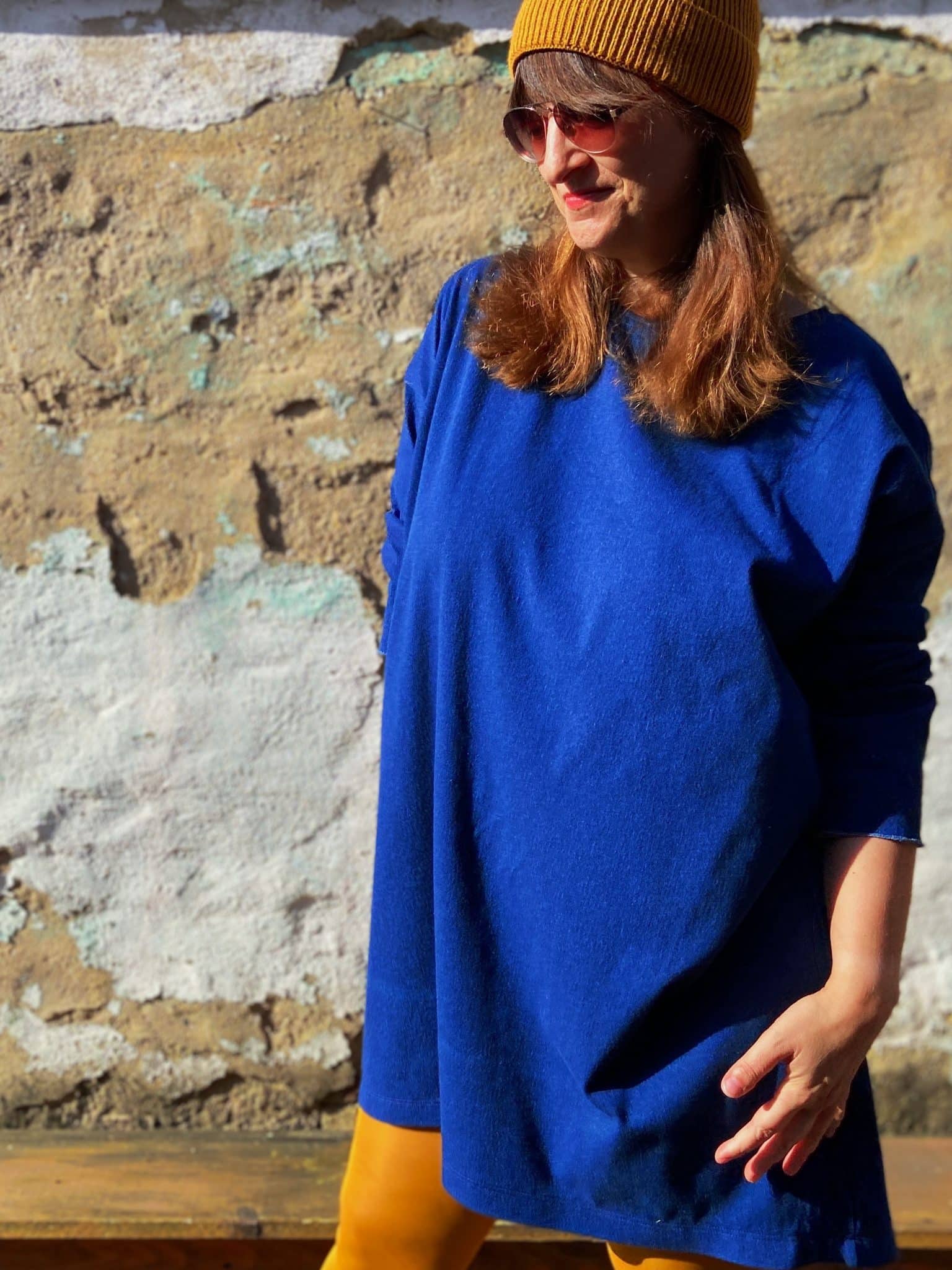 Dank der lockeren Passform & des großzügigen Ausschnitts kannst du das Kleid nicht nur aus Jersey oder Sweat, sondern auch aus luftigeren Stoffen wie Musselin oder Frottee nähen.