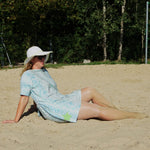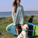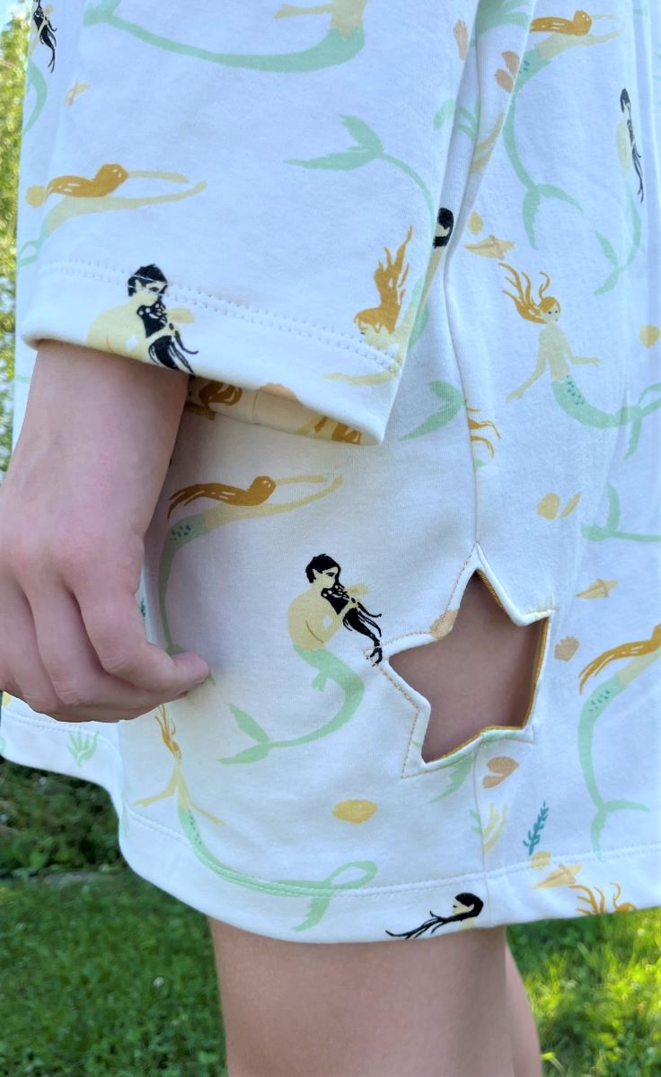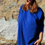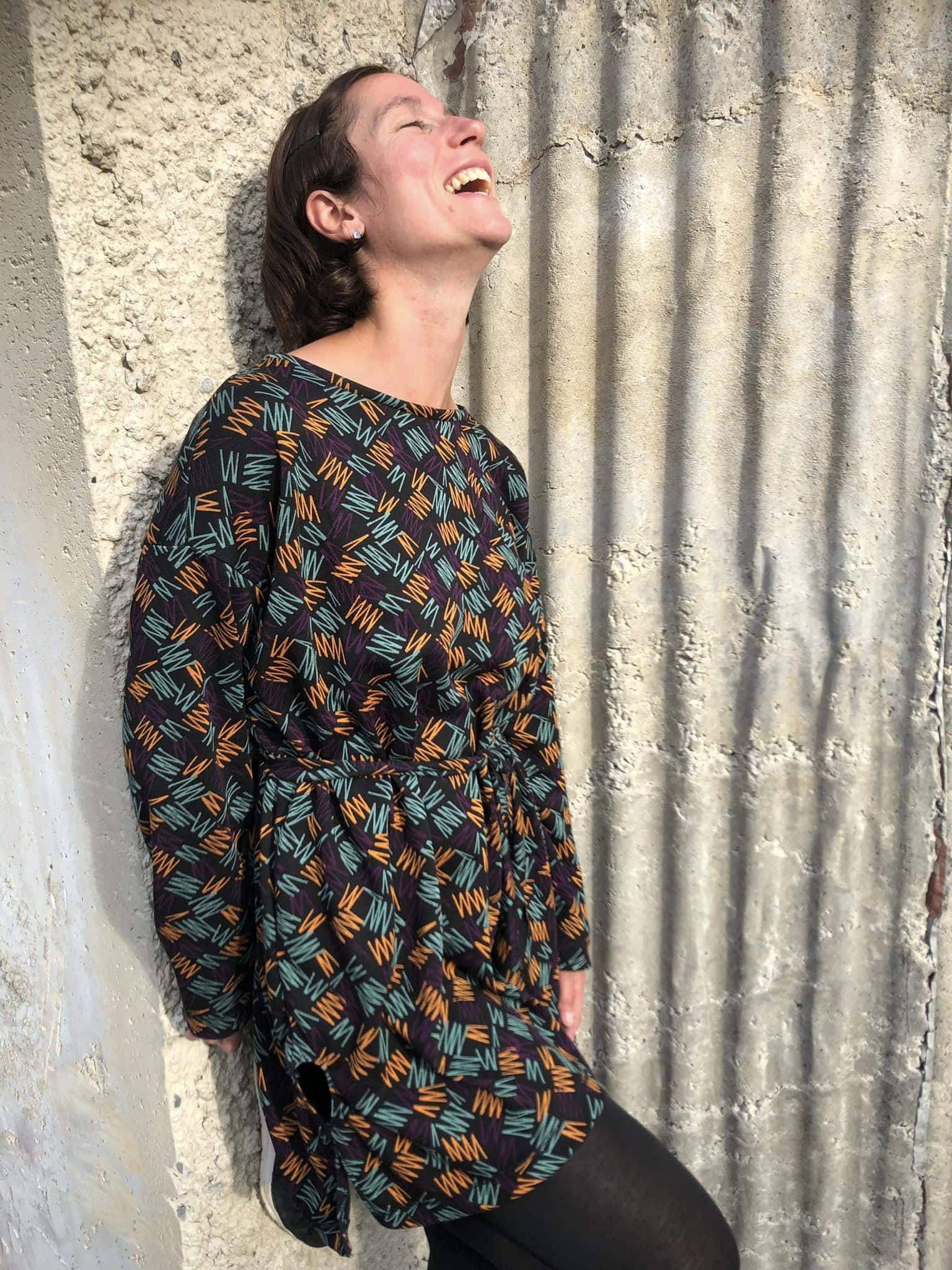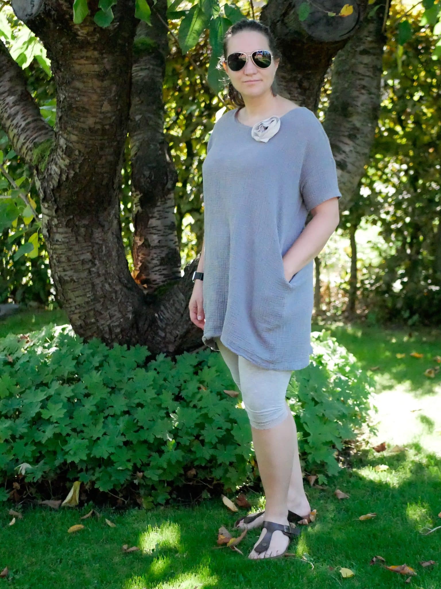 Dank der lockeren Passform & des großzügigen Ausschnitts kannst du das Kleid nicht nur aus Jersey oder Sweat, sondern auch aus luftigeren Stoffen wie Musselin oder Frottee nähen.