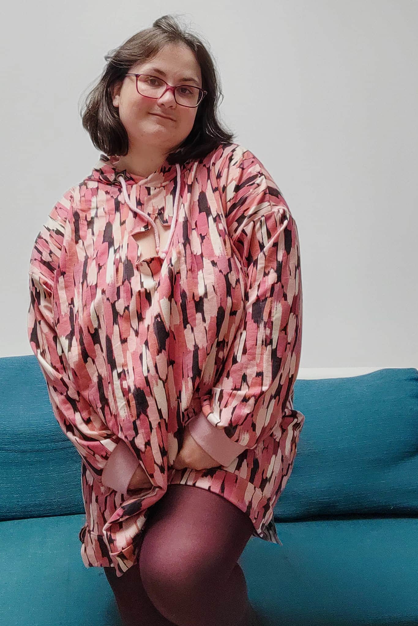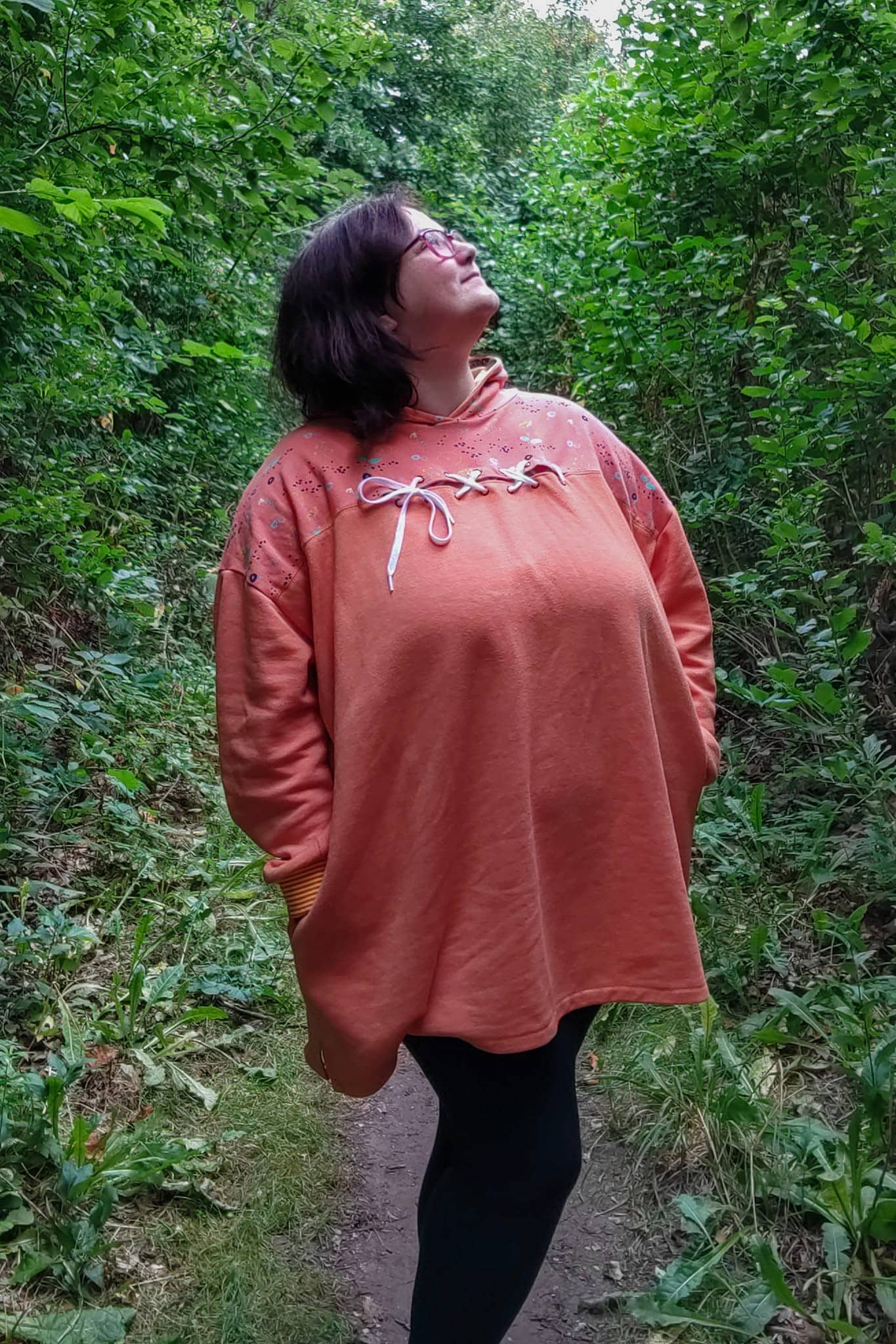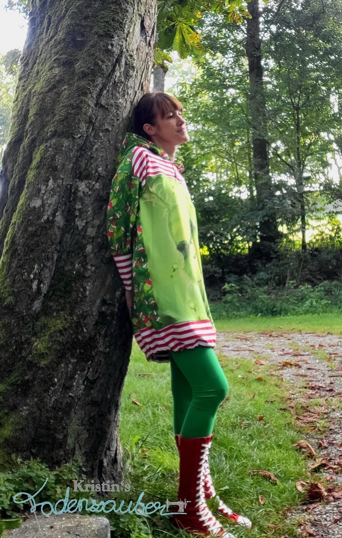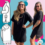 Mit diesem Schnittmuster kannst du dir ein trendiges oversized Kleid mit vielen individuellen Gestaltungsmöglichkeiten nähen! Ob mit Cut-Outs, Seitenschlitz, Kapuze oder Nahttaschen – du entscheidest, wie dein Kleid aussehen soll.