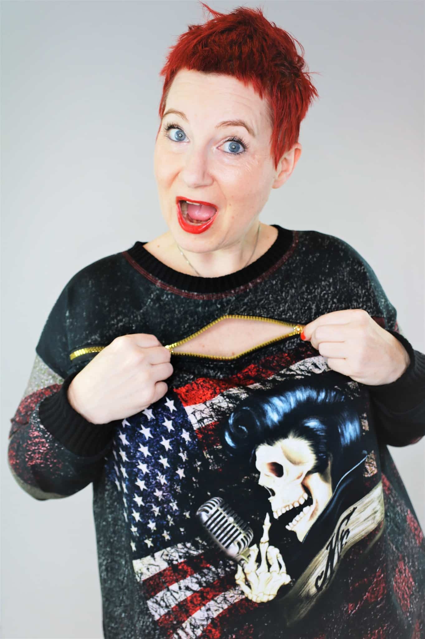 - Die Cut-Outs & der Brustschlitz gelingen am besten mit etwas festeren Stoffen wie Sweat oder Baumwolljersey.