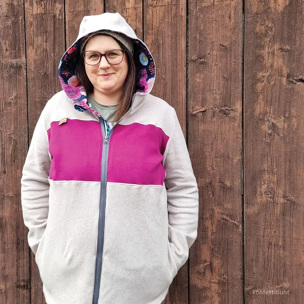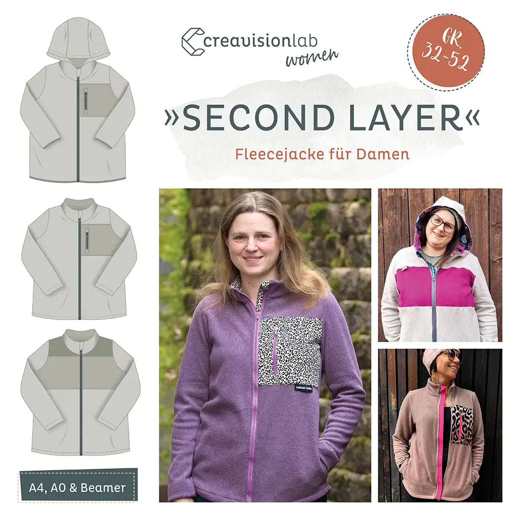 Durch die optionalen Unterteilungen im Vorderteil lässt sich die Jacke individuell gestalten – egal, ob du Stoffreste verwerten möchtest oder einen modernen Color Blocking Look kreieren willst. Die „Second Layer“ eignet sich nicht nur für kühlere Tage sondern ist dein neuer idealer Begleiter zum Wandern, Skifahren, Camping oder als gemütliche Freizeitjacke.