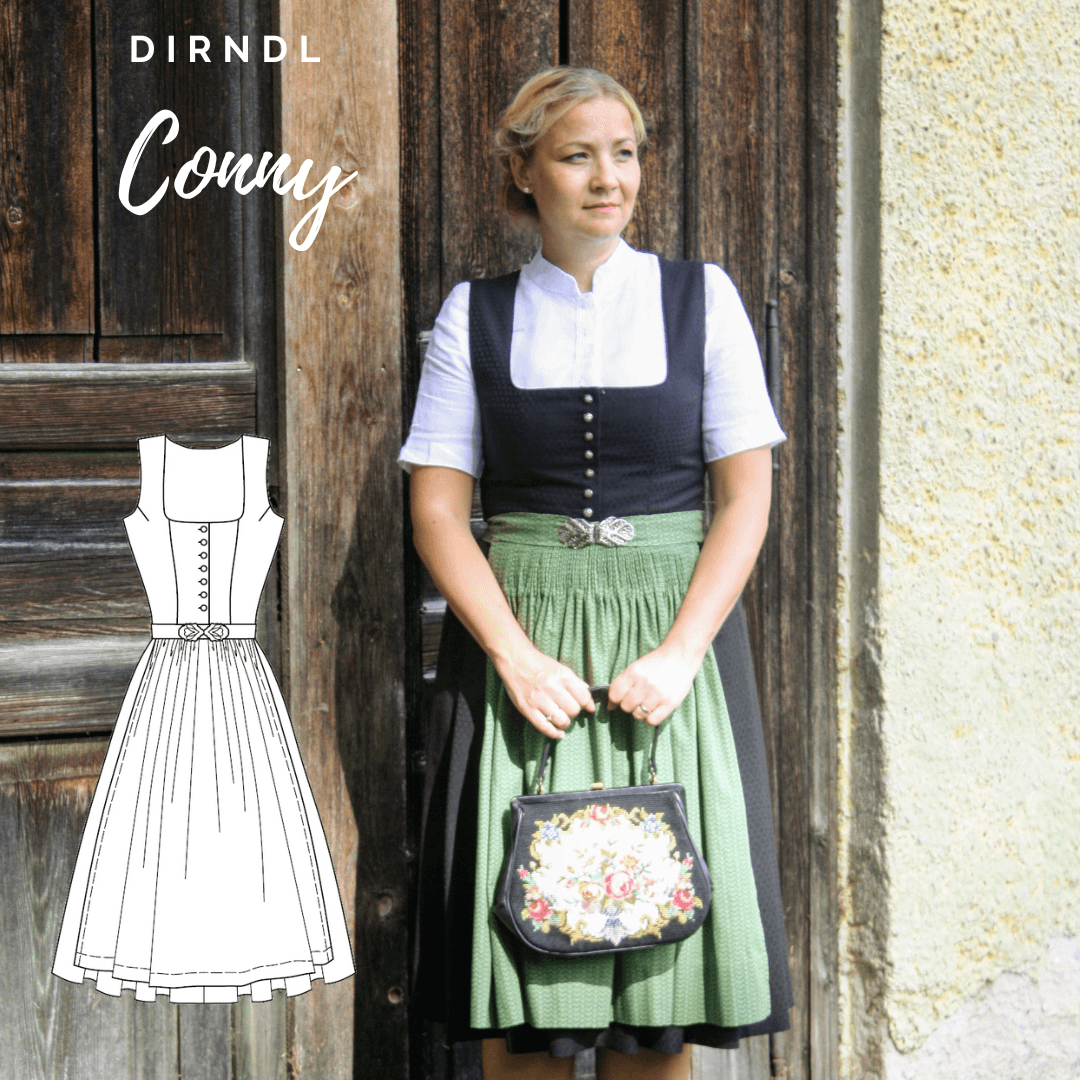 Das Dirndl Conny ist ein ganz klassisches Dirndl mit Münchener Ausschnitt und Knöpfen. Der Ausschnitt ist nicht zu tief und kann sogar ohne Bluse getragen werden. Die Schürze ist von Hand gestiftelt und wird mit einer Schließe geschlossen. Die Seitennähte sind änderungsfreundlich verarbeitet, sodass des Dirndl a bisserl „mitwachsen“ kann.
