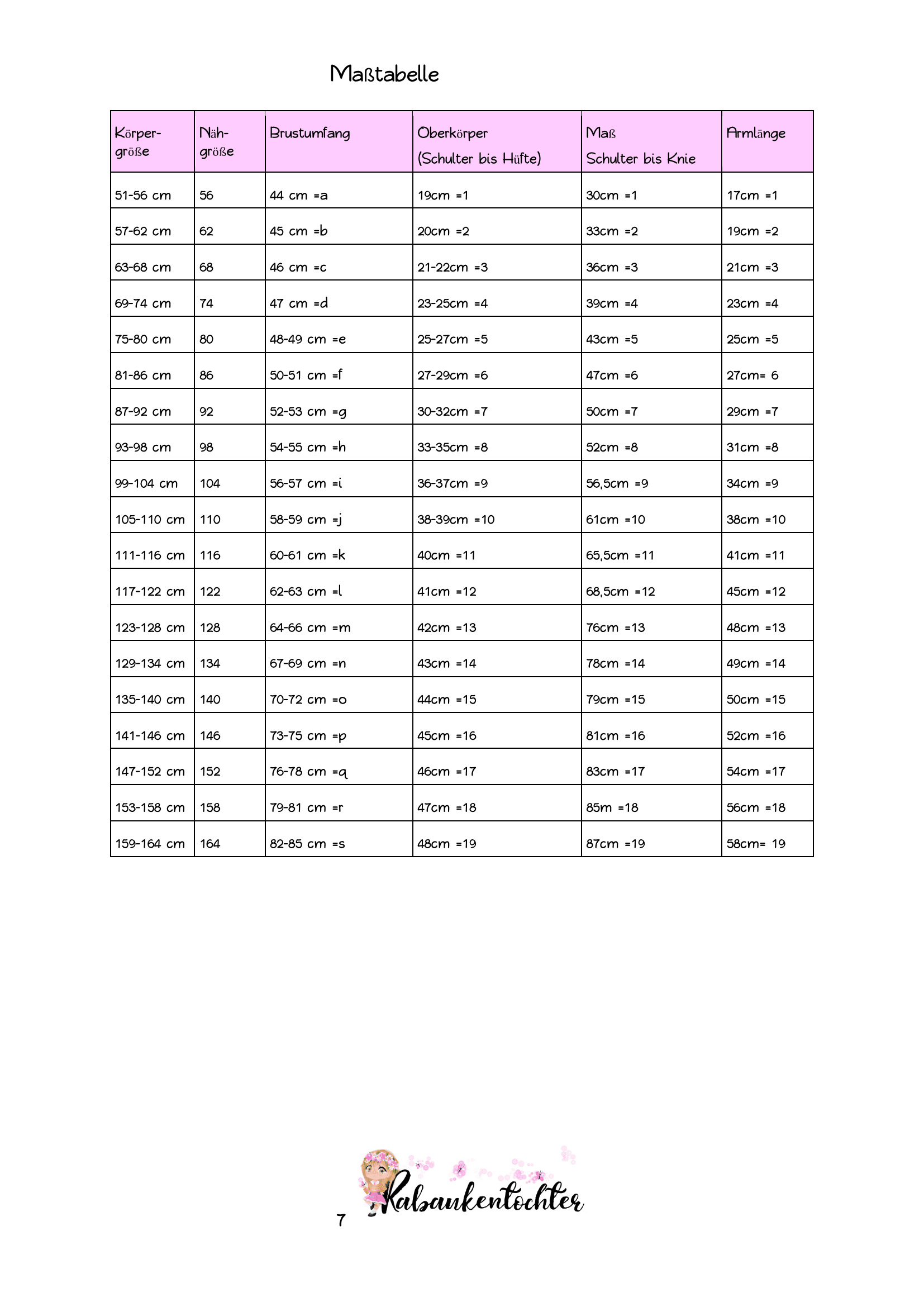 Dieser Schnitt darf sowohl zu privaten, wie auch gewerblichen Zwecken genutzt werden. Es bedarf keiner gesonderten Lizenz. Wünschenswert ist die Nennung des Designers, sowie des Schnittmusters. Die Weitergabe, Vervielfältigung oder Veröffentlichung des eBooks ist strengstens verboten. Fällt dir ein Fehler in der Anleitung auf oder es bestehen Unklarheiten, melde dich gerne bei mir.
