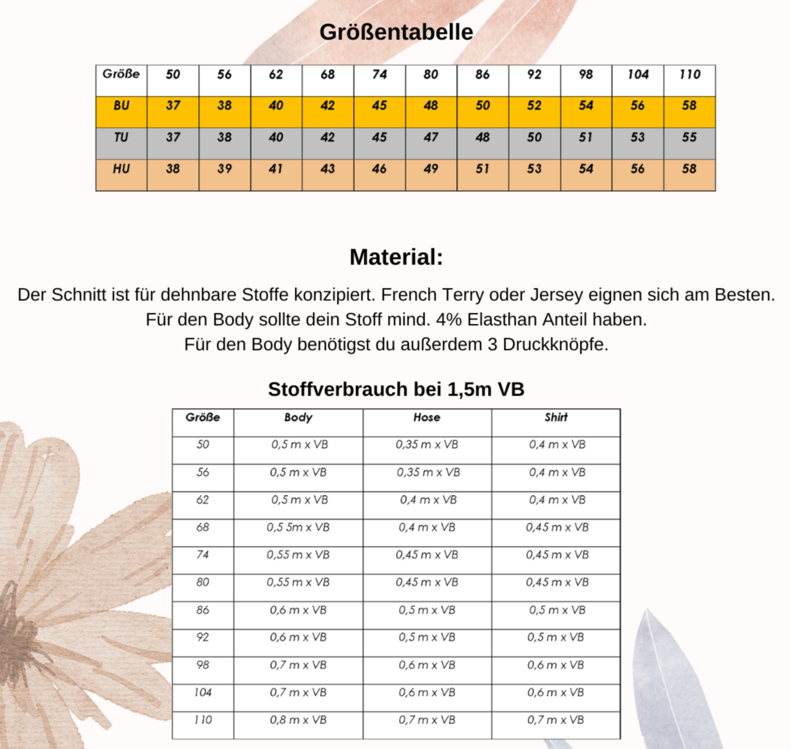 Das “Zwergenset” für große Größen Ist ein Schnittmuster für einen Body, eine Pumphose und einen Pulli in den Größen 50 -110
