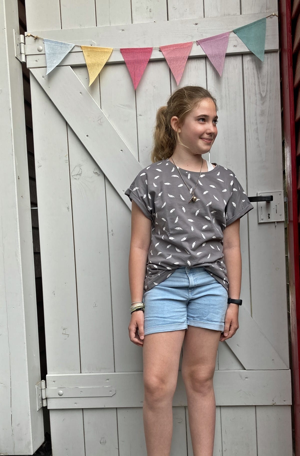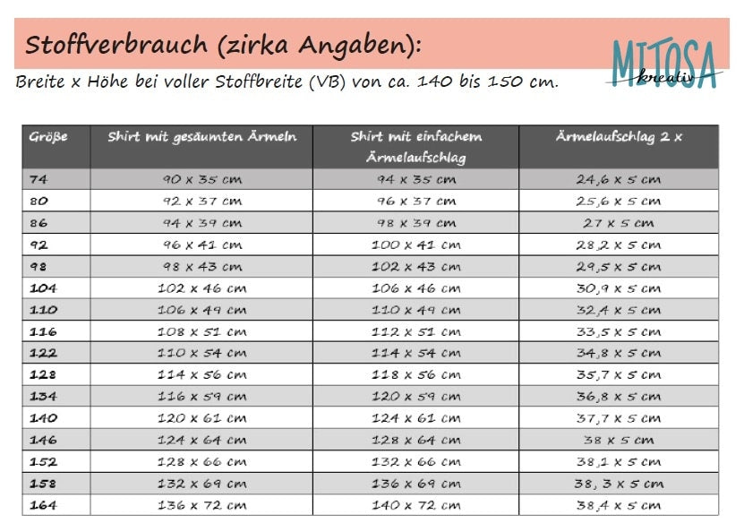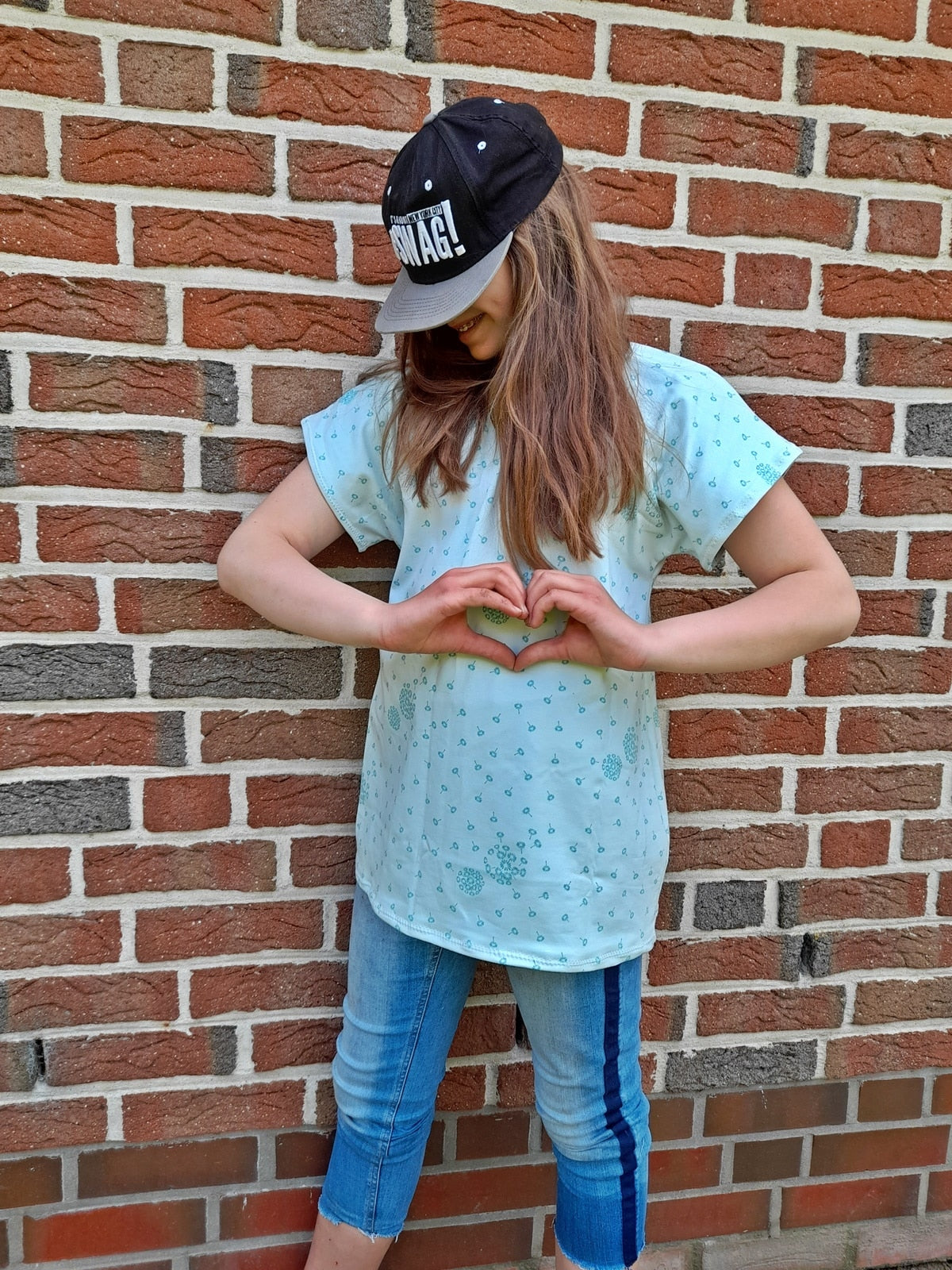 Das Family Shirt eignet sich für dehnbare Stoffe wie Jersey, Viskosejersey, Leinenjersey, Modal oder auch Interlock und Sommersweat. Besonders gut kommen Viskosejerseys und dünnere Baumwolljerseys zur Geltung, aber auch leichtere Stoffe wie Leinenjersey sind super geeignet.
