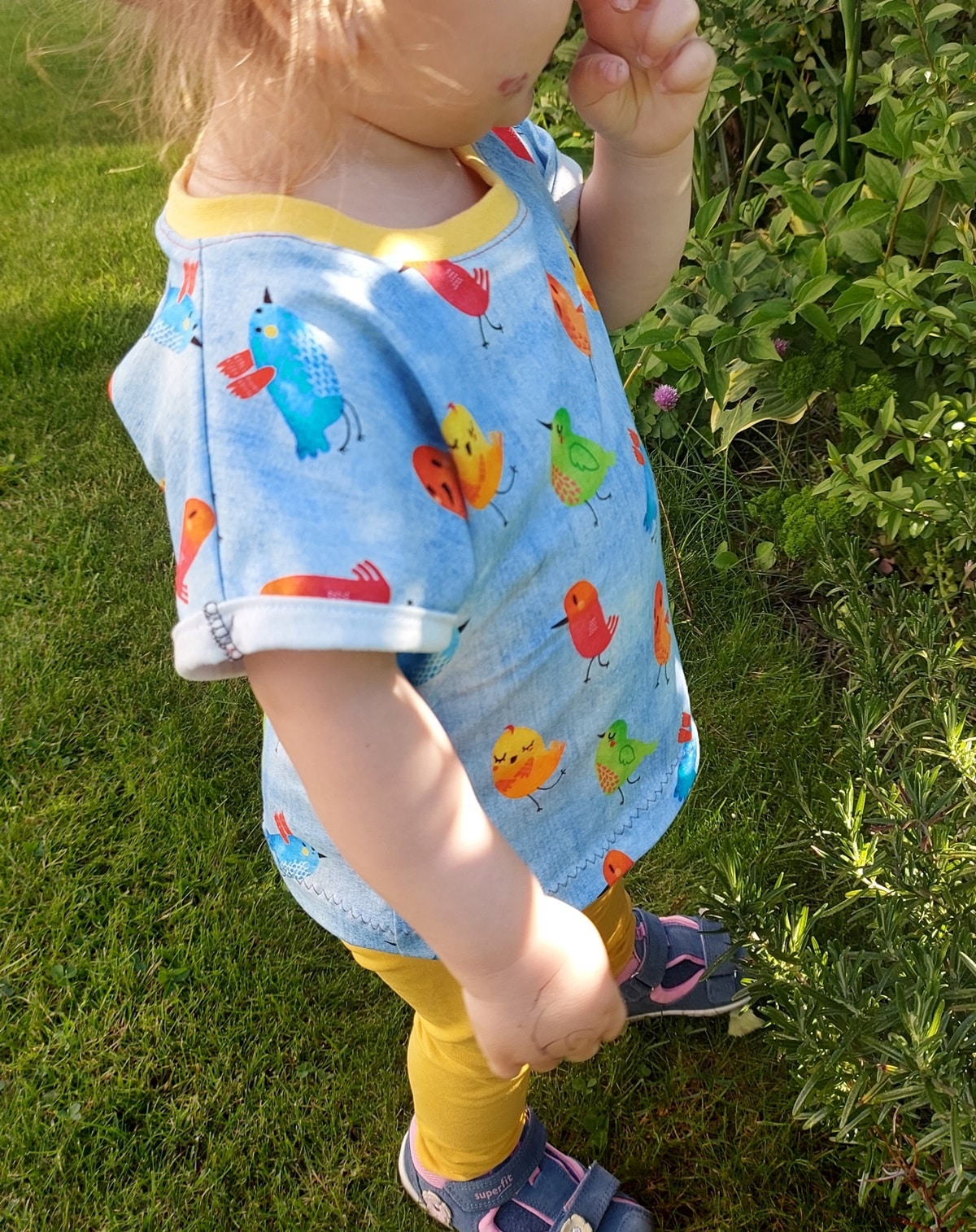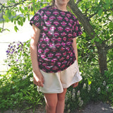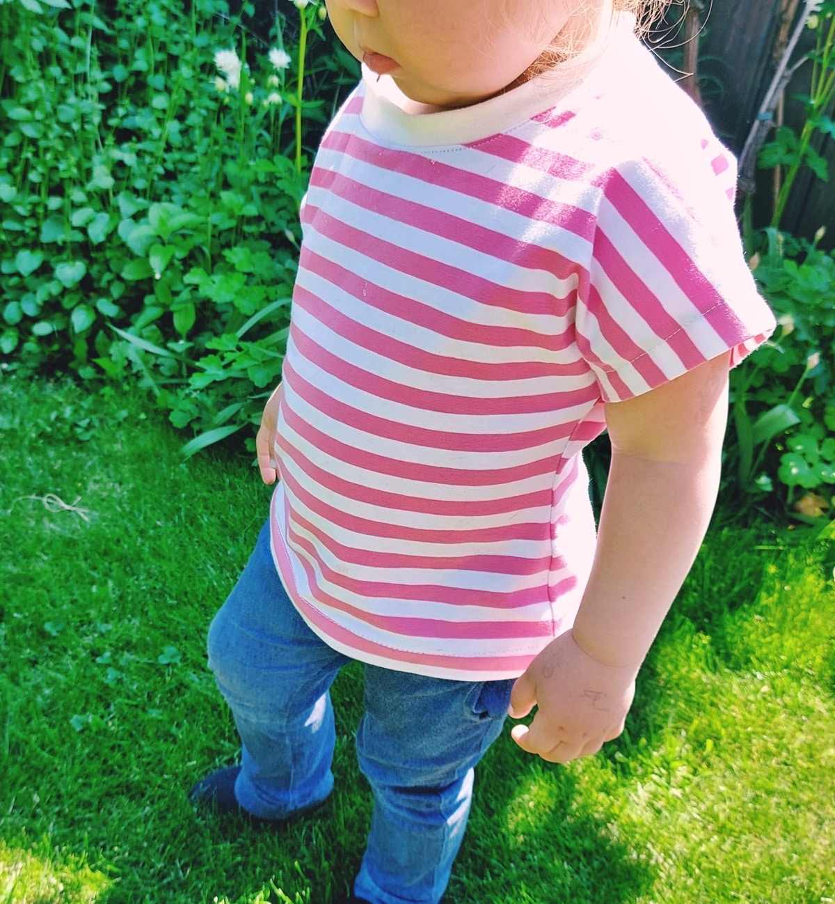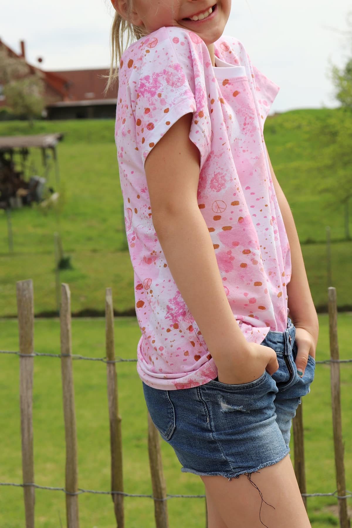 Das Family Shirt eignet sich für dehnbare Stoffe wie Jersey, Viskosejersey, Leinenjersey, Modal oder auch Interlock und Sommersweat. Besonders gut kommen Viskosejerseys und dünnere Baumwolljerseys zur Geltung, aber auch leichtere Stoffe wie Leinenjersey sind super geeignet.