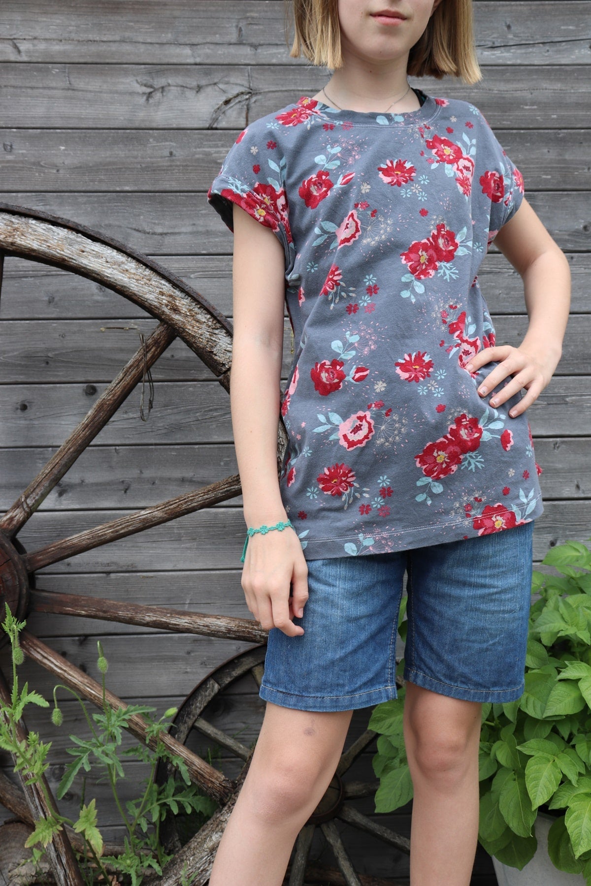 Du suchst ein Schnittmuster für ein bequemes, stylisches Shirt? Das Family Shirt ist genau das Richtige! Es kommt in lässiger Länge, mit luftigen Ärmeln und zwei Ausschnitt-Optionen – Rundhals oder V-Ausschnitt. Die Ärmel kannst du mit oder ohne Aufschlag nähen. Für Kinder gibt es eine taillierte Variante ab Größe 98 sowie einen geraden Schnitt.