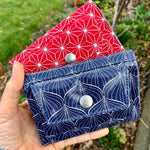 Vielleicht kennst du schon mein Kohle(N)pöttchen, eine kleine Geldbörse, in die auf der einen Seite Scheine und auf der anderen Seite 1-2 Karten und Münzen passen.