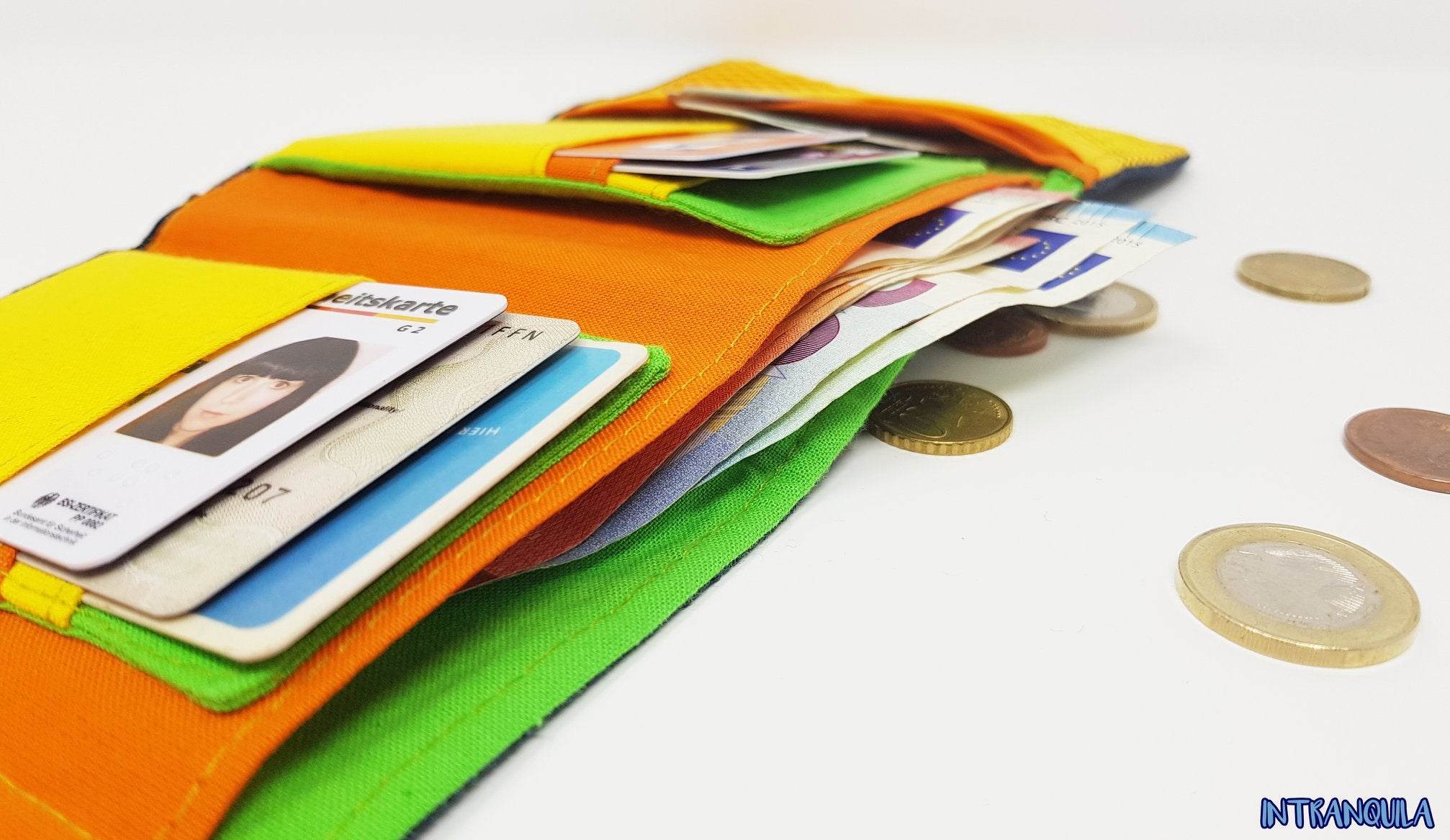 Manchmal braucht man etwas mehr Platz, möchte die Geldbörse aber trotzdem möglichst kompakt haben (9 x 12 cm). Hier gilt wieder das Motto "so klein wie möglich, so groß wie nötig". Im Kohle(N)Schlepper hast du zusätzlich zum Kleingeldfach, in das auch wieder 1-2 Karten passen, im Innenraum Platz für Autopapiere und Führerschein, Fotos, Geldscheine und weitere 6 Karten.