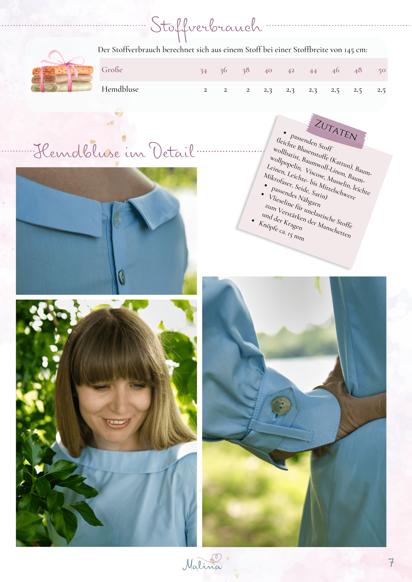 Eine ausführliche bebilderte Nähanleitung begleitet dich auf deinem Weg zur fertigen Bluse, damit du selbst als Anfänger problemlos ein perfektes Ergebnis erzielst.