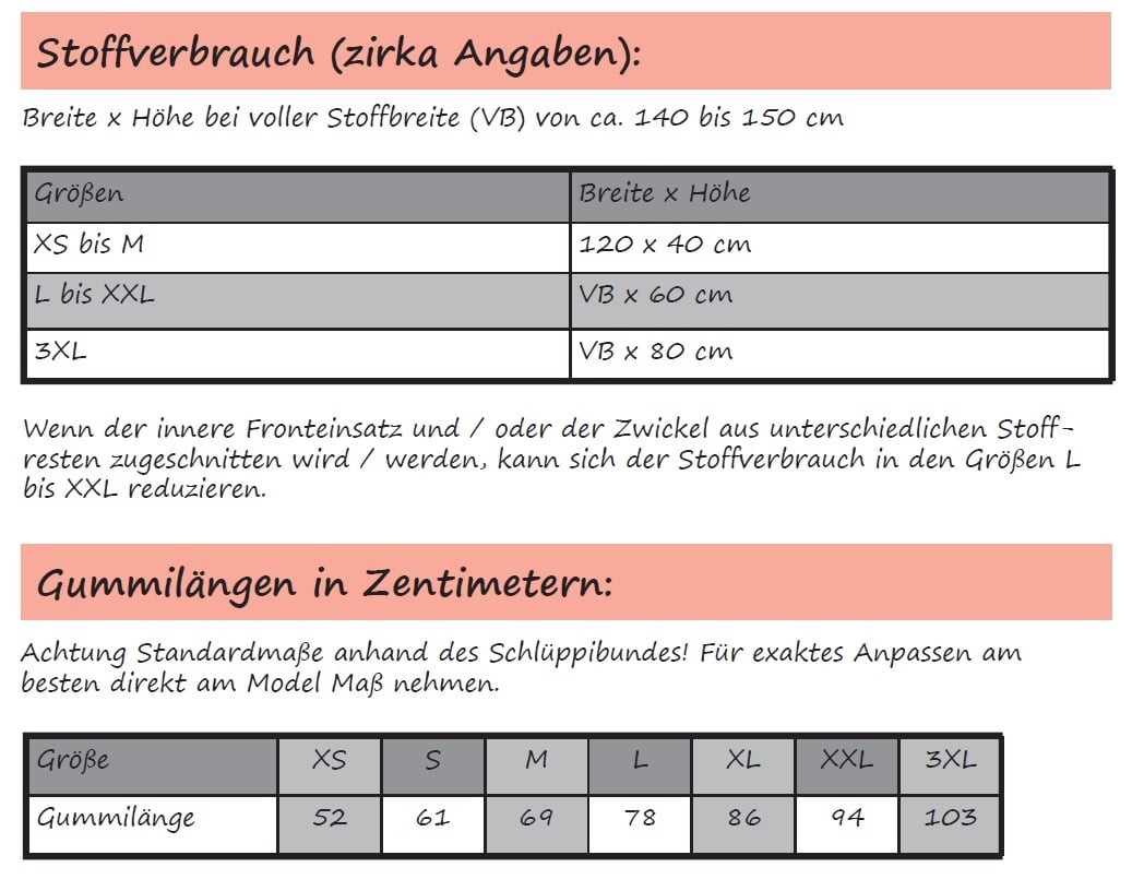 Achte darauf, dass der Stoff ausreichend Elastan enthält, damit der Schlüppi bequem sitzt und nicht ausleiert.