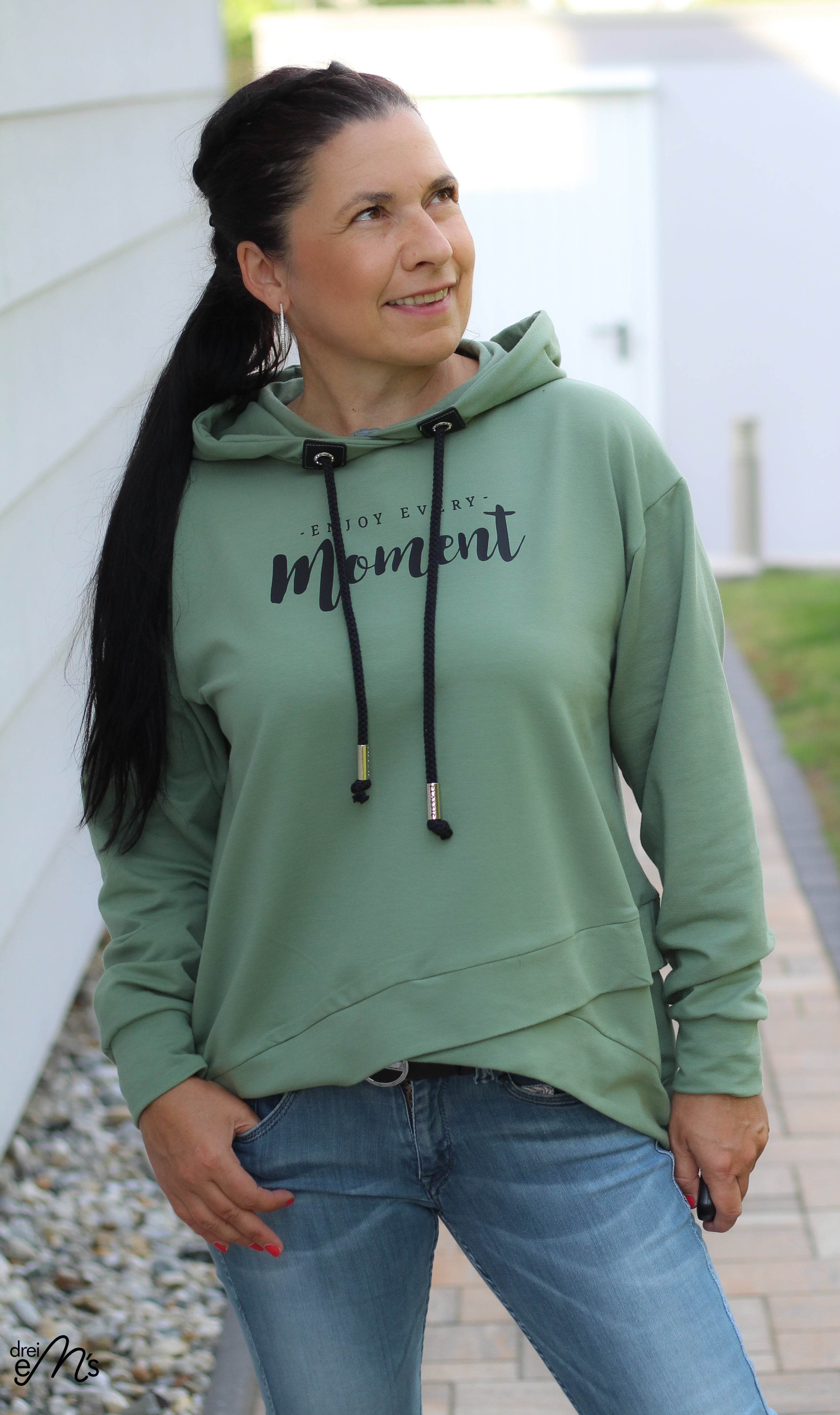 CARBONIA bekommst du in den Größen 32-54 Der Schnitt enthält 2 Längen. Du kannst den Hoodie in A-Linie mit oder ohne Kapuze nähen. Auch gibt es die Möglichkeit eine asymmetrischen Variante.