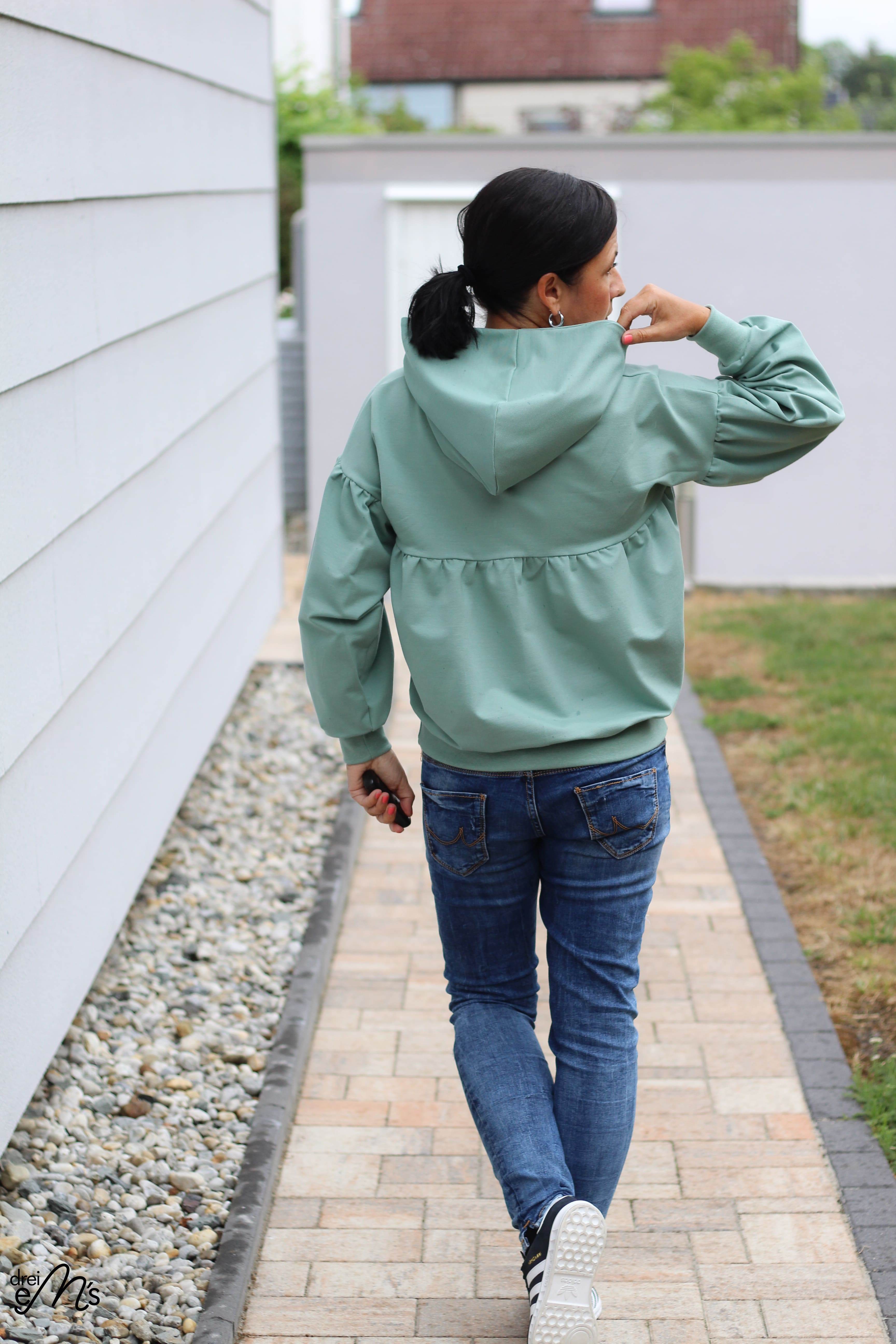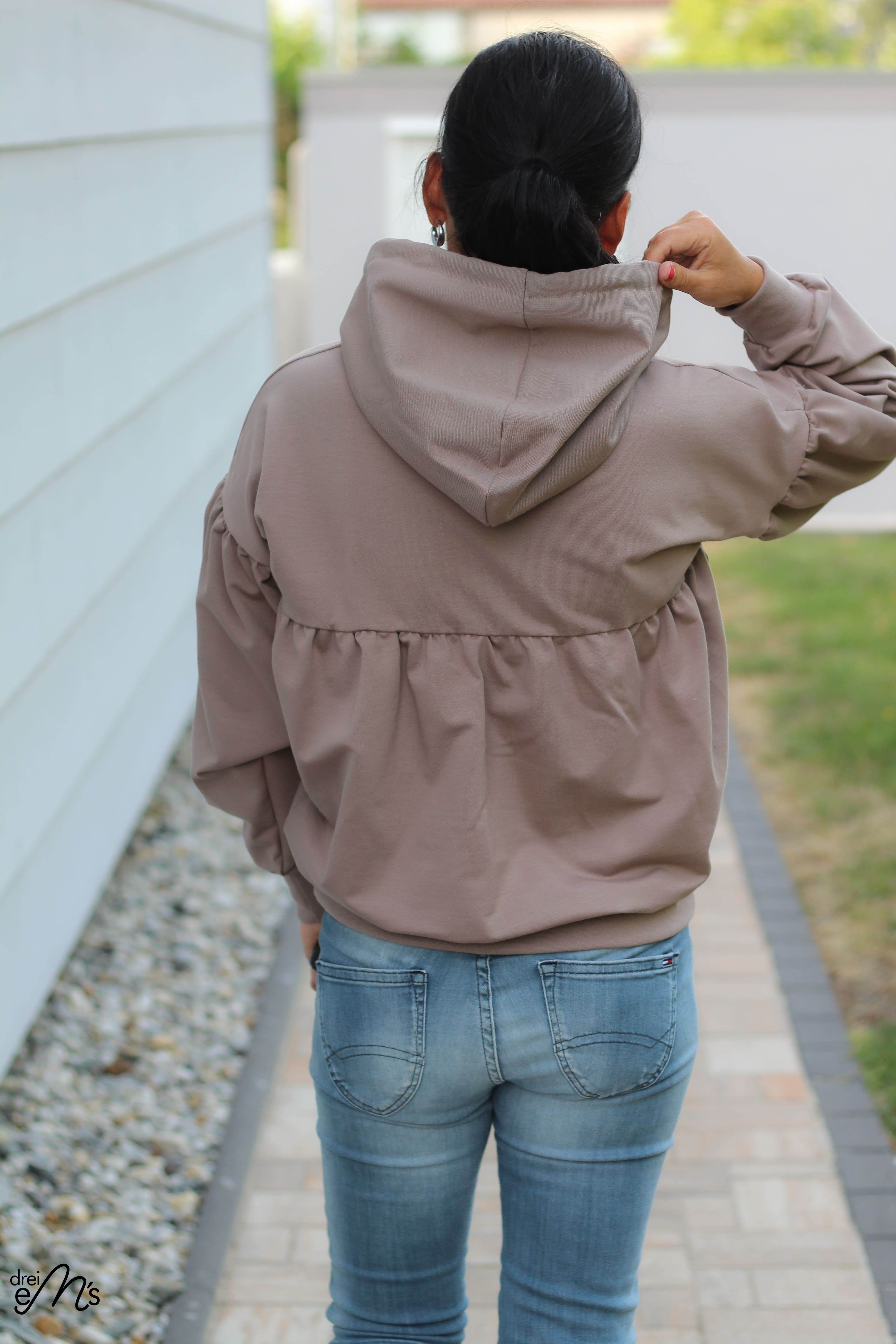 LAPPACH ist ein extravaganter Hoodie, der durch die Raffunghen im Rücken und an den Ärmels ein absoluter Eyecatcher ist. Der Schnitt enthält 3 Längen. ( Körpergröße 1,58/ 1,68 und 1,78)