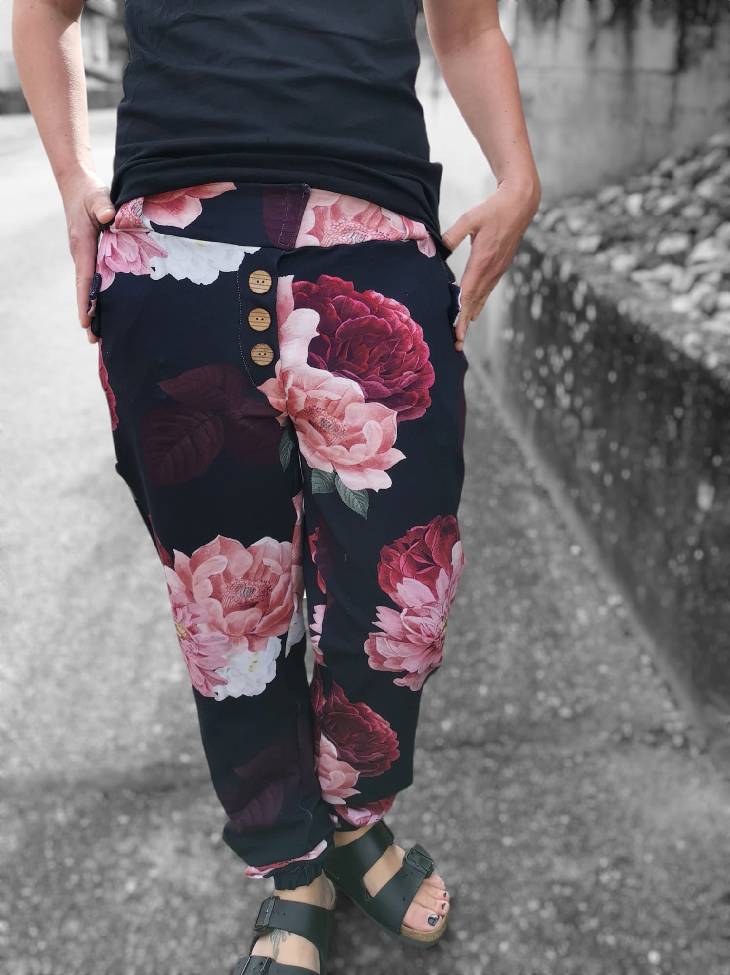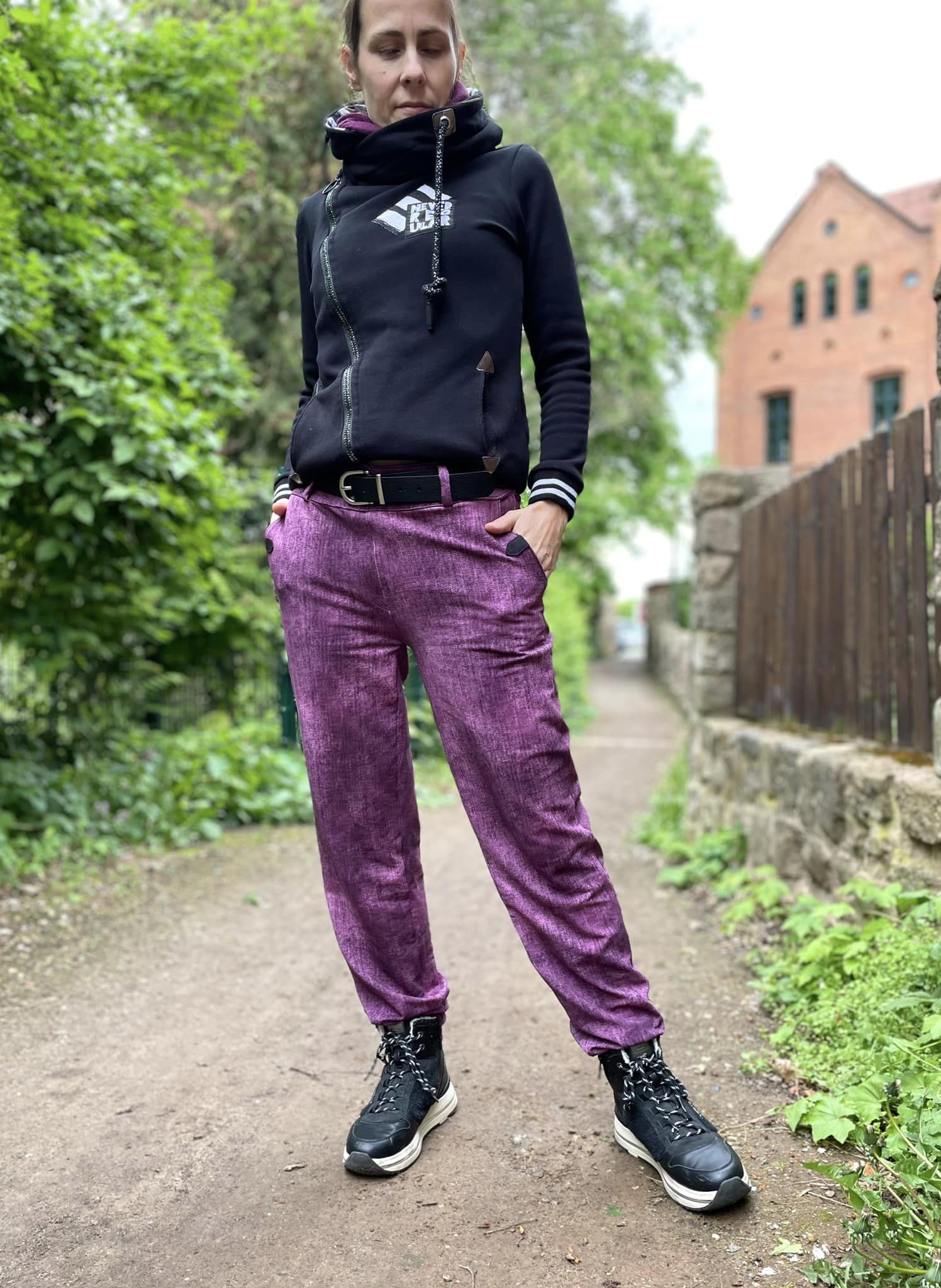 - Geeignete Stoffe: Sweat, FrenchTerry, elastische Hosenstoffe