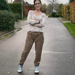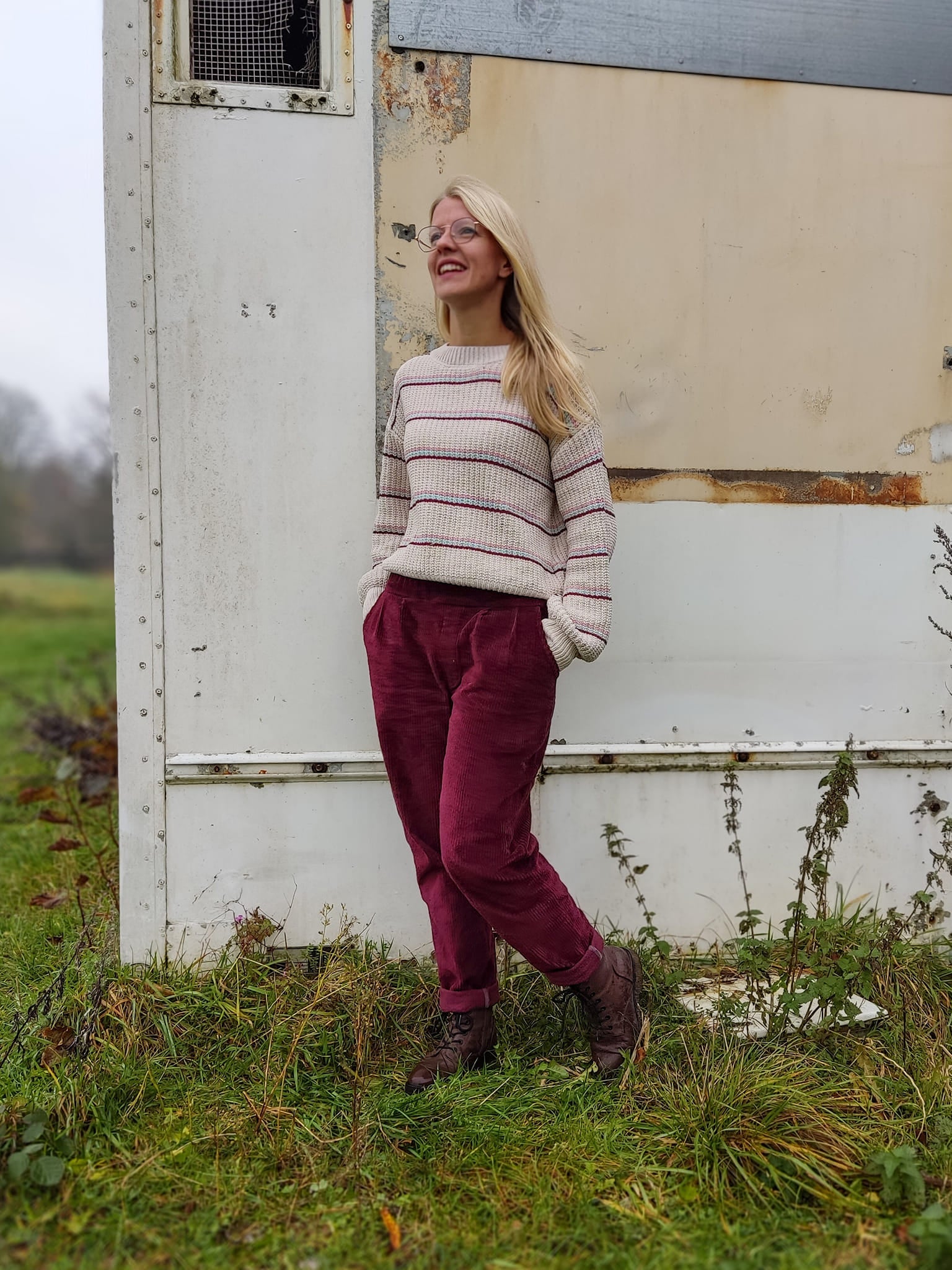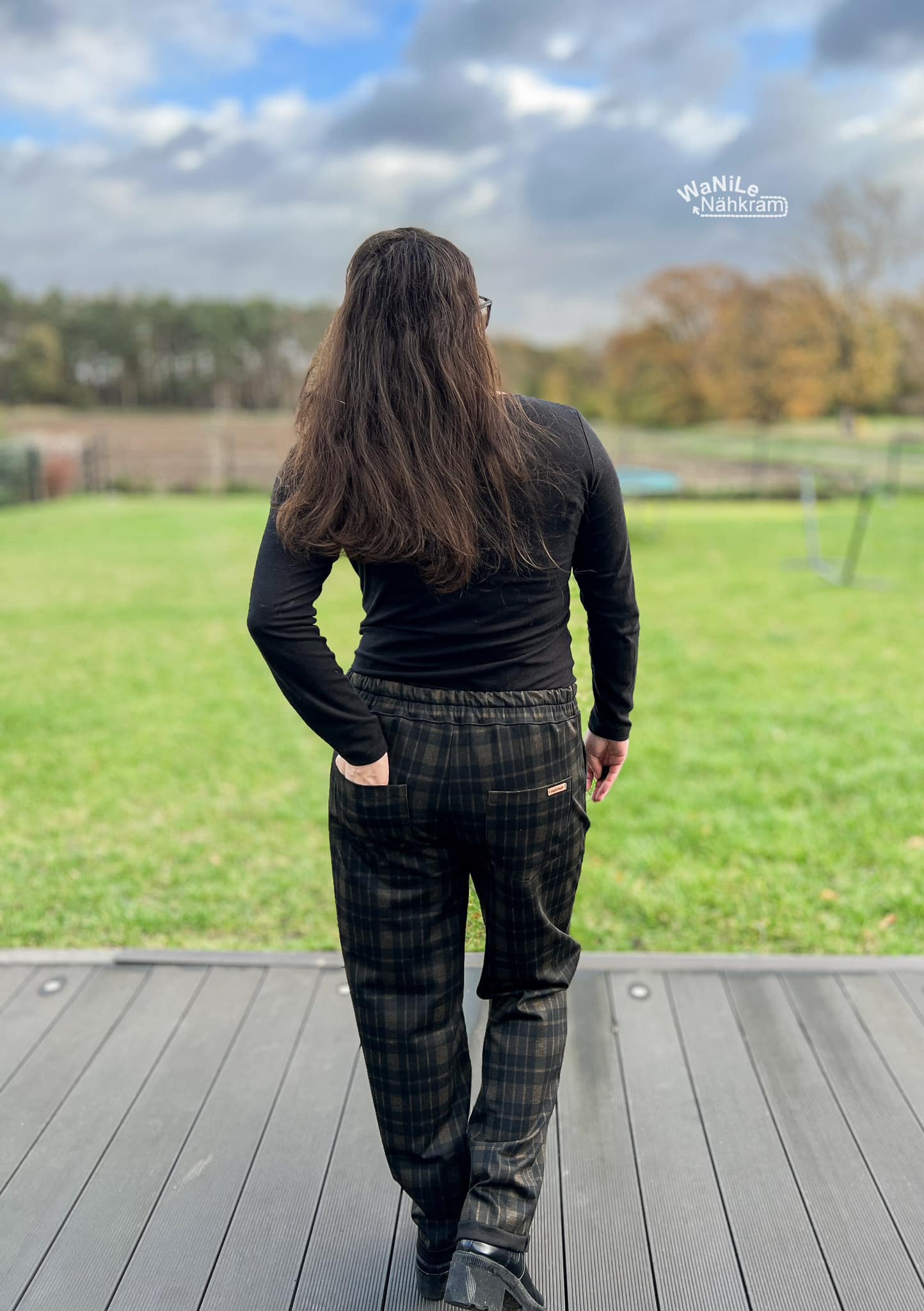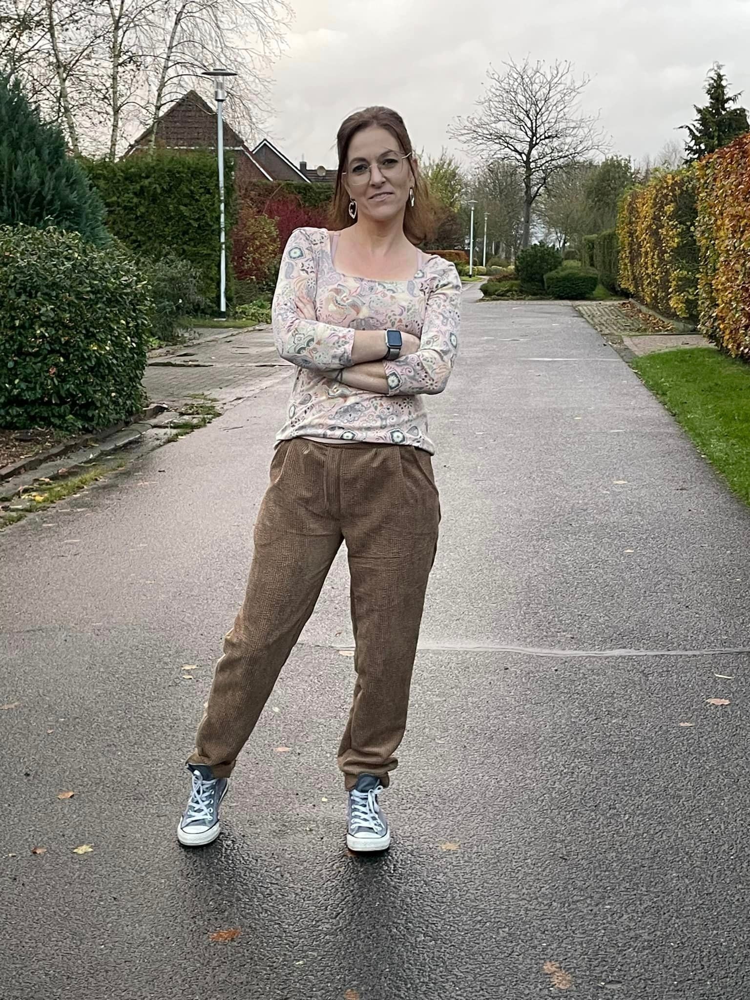 - Geeignete Stoffe: Cord, leichte, nicht steife Hosenstoffe