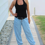 Wenn du die Nähte mit einer Zwillingsnadel versiehst, hast du einen tollen Jeanshosen-Look.