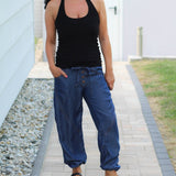 BUDONI ist eine Hose die vielseitiger nicht sein kann! In der Vorderhose besticht sie durch eine halbrunde Teilung, welche dem Style eine besonders coole Note verleiht. Natürlich sind auch ein Fake-RV und Seitentaschen enthalten. Die Hinterhose enthält eine Passe´ und Gesäßtaschen. Die Hose hat einen bequemen Schlupfbund mit innenliegendem Gummi. Du kannst zusätzlich noch Gürtelschlaufen oder selbstgenähte Ösen mit einem selbstgenähten Band aufpeppen. Auch dies ist selbstverständlich alles Schritt für Schritt in der Anleitung erklärt. Der Beinabschluss enthält auch einen Gummizug.