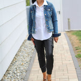 Optional sind ein Fake-Reißverschluß und Gürtelschlaufen auch im Schnitt enthalten.