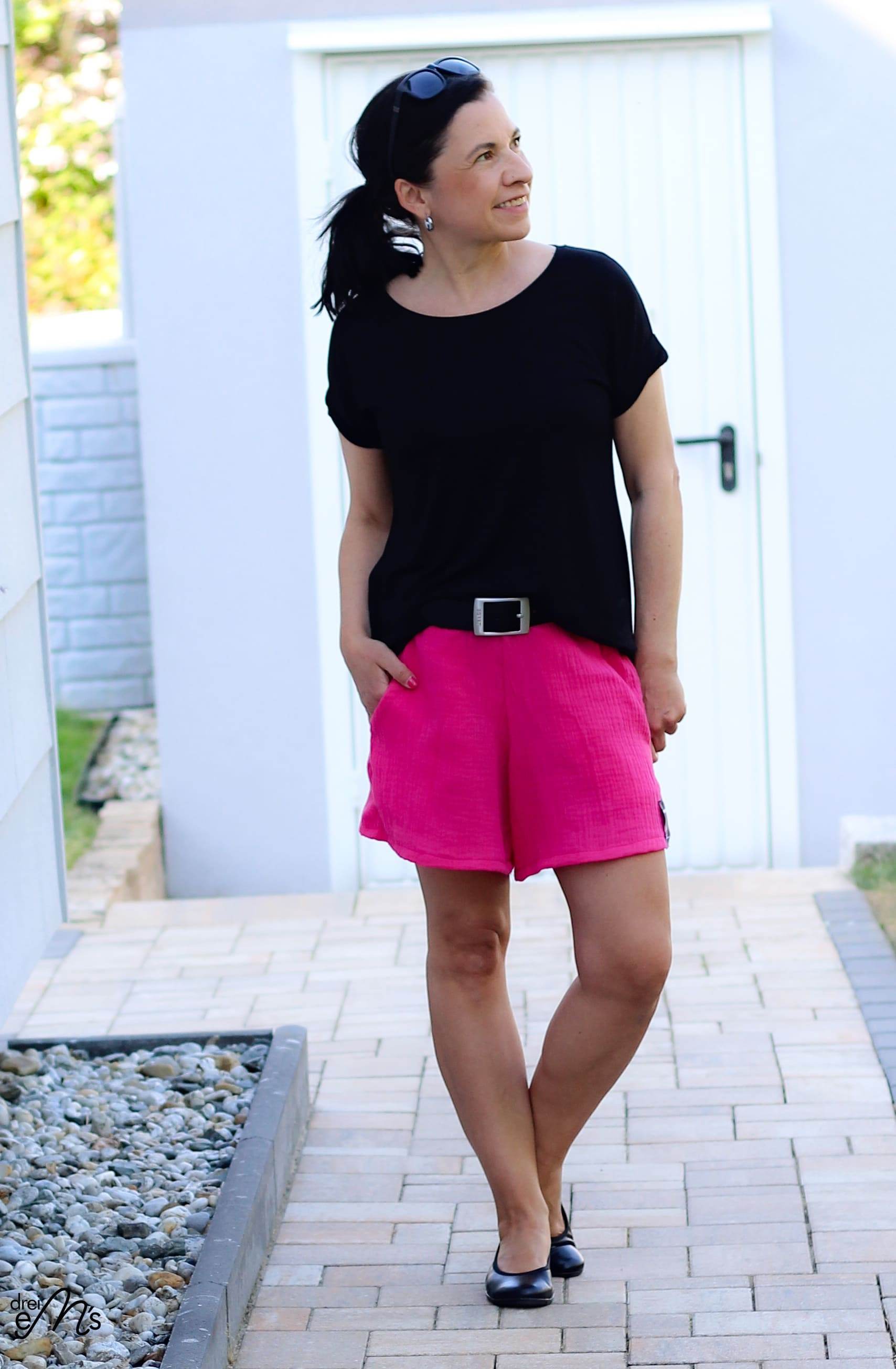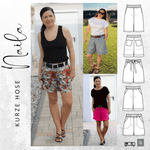 Du bekommst die kurze Hose NAILA in den Größen 34-54. Die Hose enthält verschiedene Längen, so kommt jeder auf seine Kosten. Du kannst zwischen kurz, mittel und Bermudalänge wählen. Ebenso kannst du einen coolen Hosenaufschlag nähen oder nur säumen.