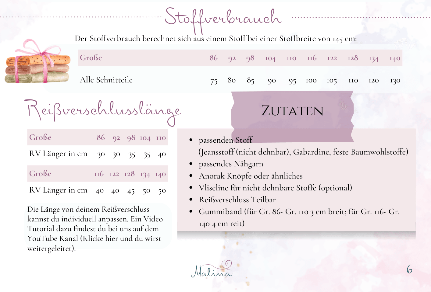 Du kannst die Jacke „Annabelle“ in den Größen 86–140 mit diesem Schnittmuster nähen.