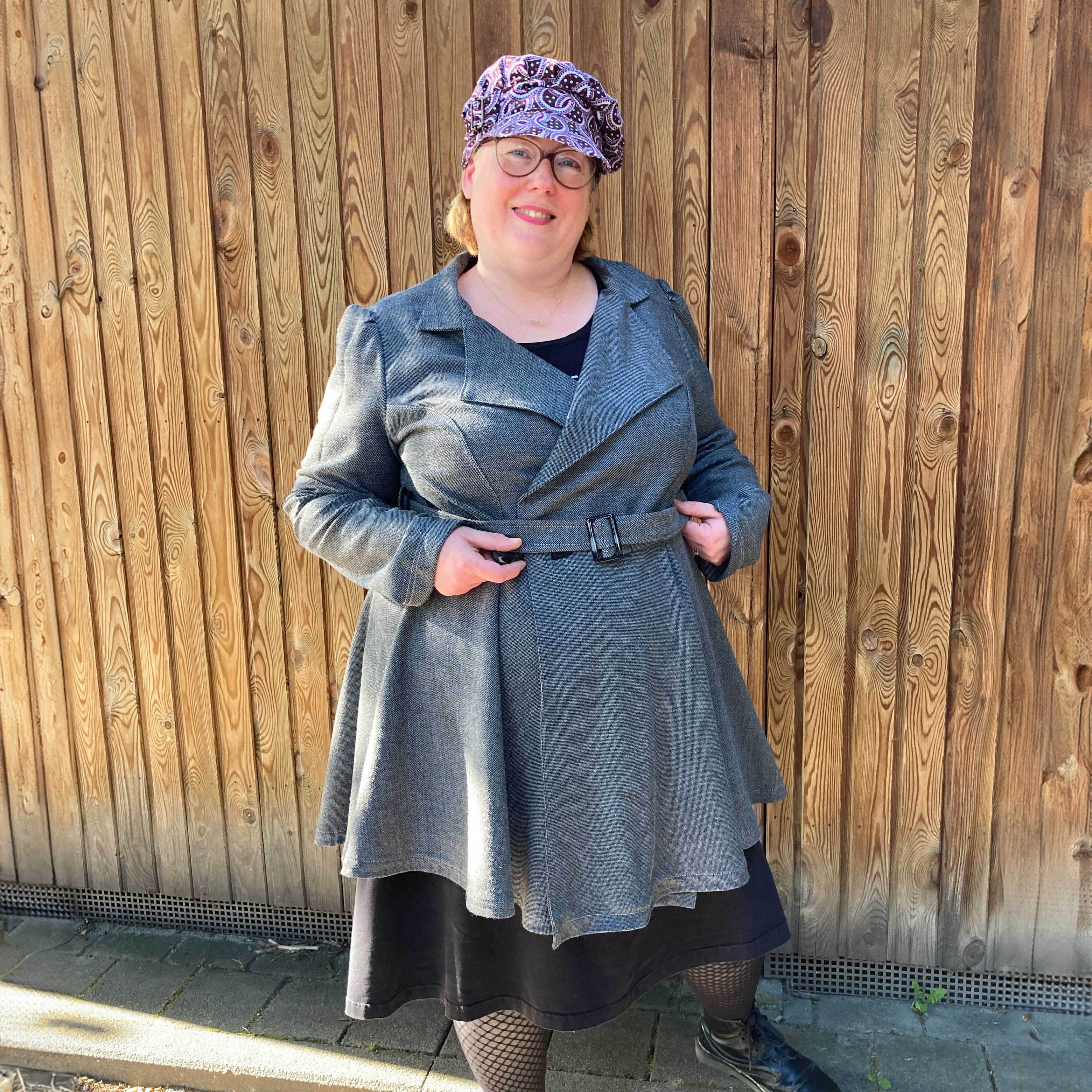 Die Jacke ist hinten länger als vorn geschnitten, besitzt einen Stehkragen und wird einlagig mit einem Beleg gearbeitet. Optional kannst du auch eine Tasche einnähen.