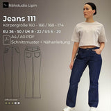 Schnittmuster Jeans, lockere Passform, high waist Jeans, Größe 36 - 50
