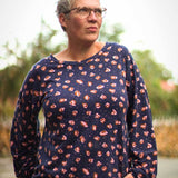 Castanha ist eine schöne, einfach und schnell genähte Bluse und verzichtet dabei ganz bewusst auf Abnäher und andere Extras. Aus dehnbaren Stoffen wie Viskosejersey oder Baumwolljersey ist sie mit dem Halsbündchen und ihren Bündchenmanschetten an den Ärmeln schnell genäht. Castanha hat überschnittene Schultern und Bischofsärmel, die an den Bündchenmanschetten gekräuselt werden. Die Jerseybluse kann zu Rock und Hose kombiniert werden und ist ein bequemer und doch modischer Begleiter durch den Tag. Castanha eignet sich auch hervorragend für Nähanfänger mit ersten Nähkenntnissen, die sich an ein Kleidungsstück wagen möchten.