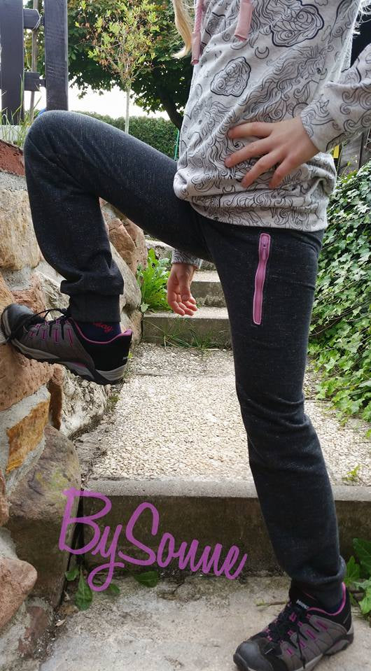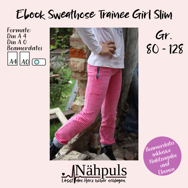 Das Ebook Sweathose Trainee Girl slim mit Reißverschlußtasche ist für dickere Materialien, die dehnbar sind, konzipiert.