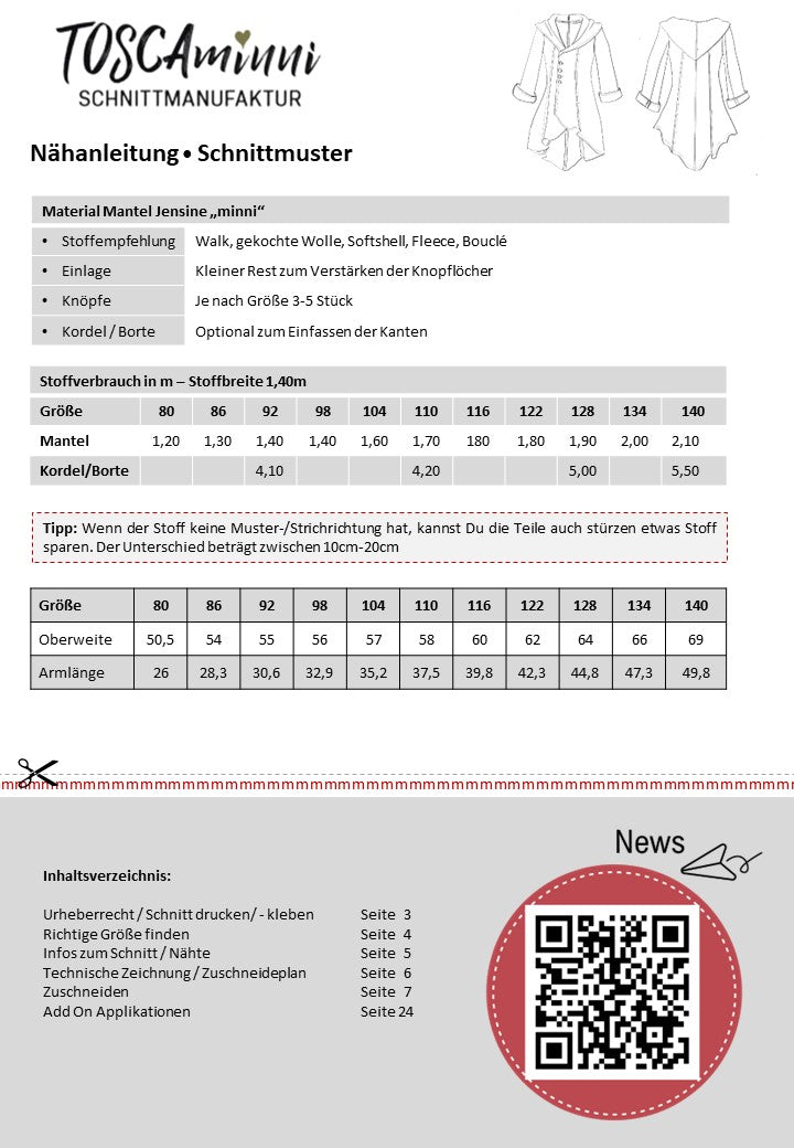 Schnittmuster Kinder Mantel Jensine "minni" Gr. 80-140