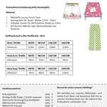 • Stoffempfehlung: dünner Jersey, für alle Versionen Webstoffe, z.B. Musselin, dünne Baumwolle auch bei der Kurzarm Version mit kurzen Hosen möglich