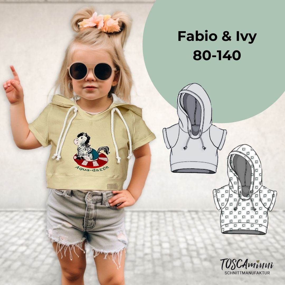 Schnittmuster Kinder Shirt Fabio + Ivy unisex Gr. 80-140 - lässiges Cropshirt mit Kapuze.