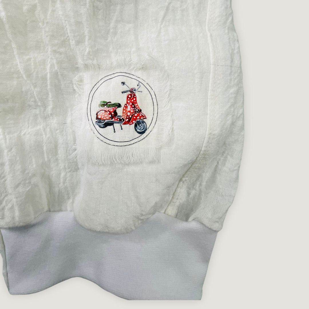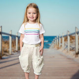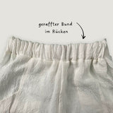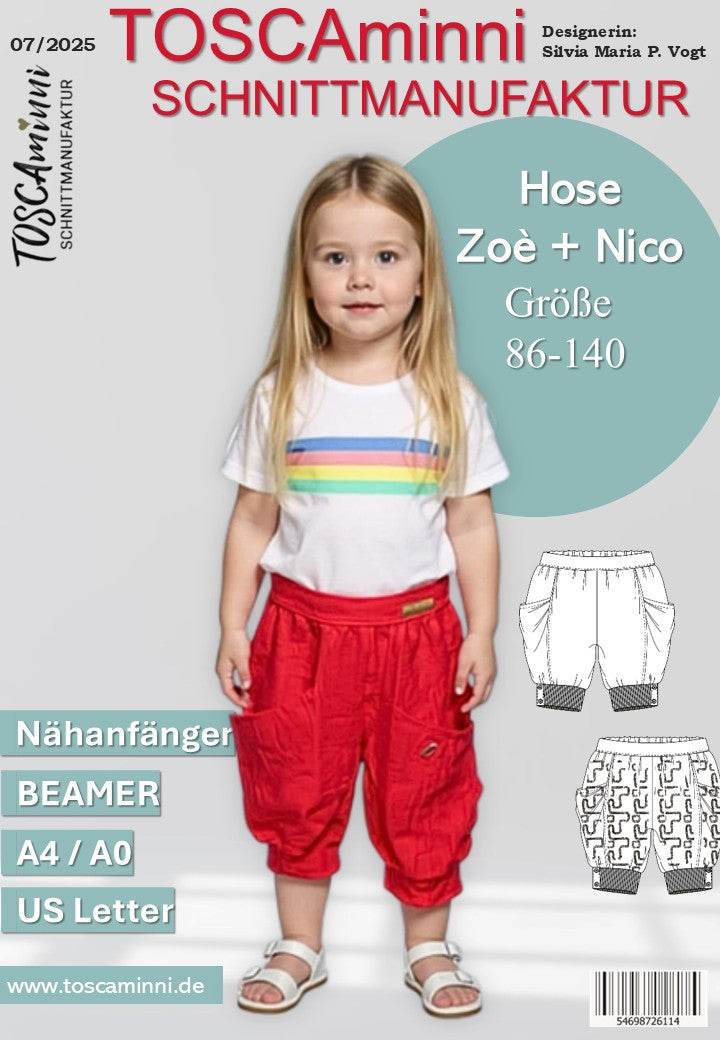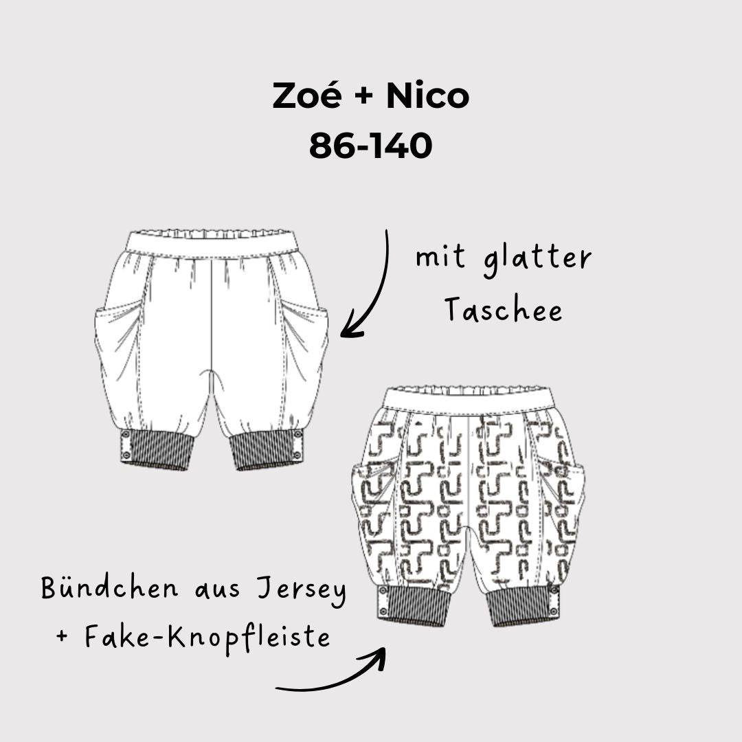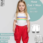 Mit dem Schnittmuster Zoè + Nico nähst du eine bequeme, stylische Kinderhose für den Sommer, die durch ihre lockere Passform und liebevollen Details überzeugt. Ob aus Leinen, Musselin oder Waffelpique oder Cord - die Hose sitzt durch den rückseitig gerafften Bund perfekt und bietet viel Bewegungsfreiheit für kleine Abenteurer.