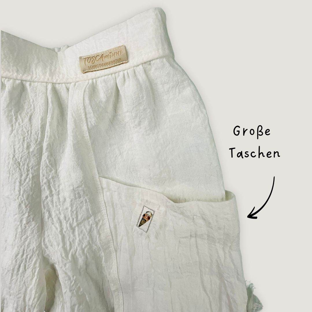 - Stoffempfehlung: Webware mit etwas Stand, z. B. Leinen, Popeline, Canvas, Musselin geht aber auch