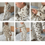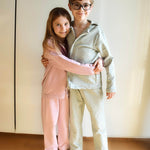 Das zeitlose Oberteil mit Knopfleiste verleiht dem Schlafanzug eine klassische Note, während die praktischen Taschen und optionalen Paspel-Details an Ärmeln und Hosenbeinen dem Design das gewisse Etwas verleihen.