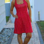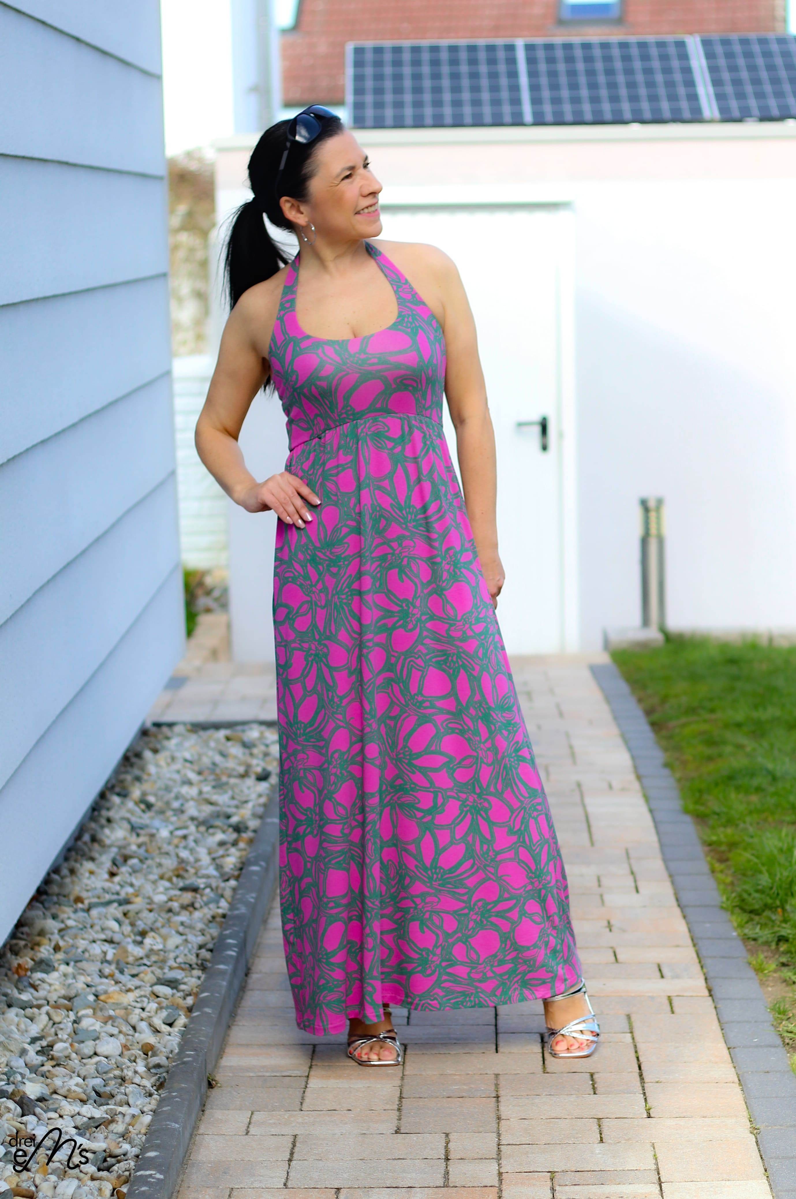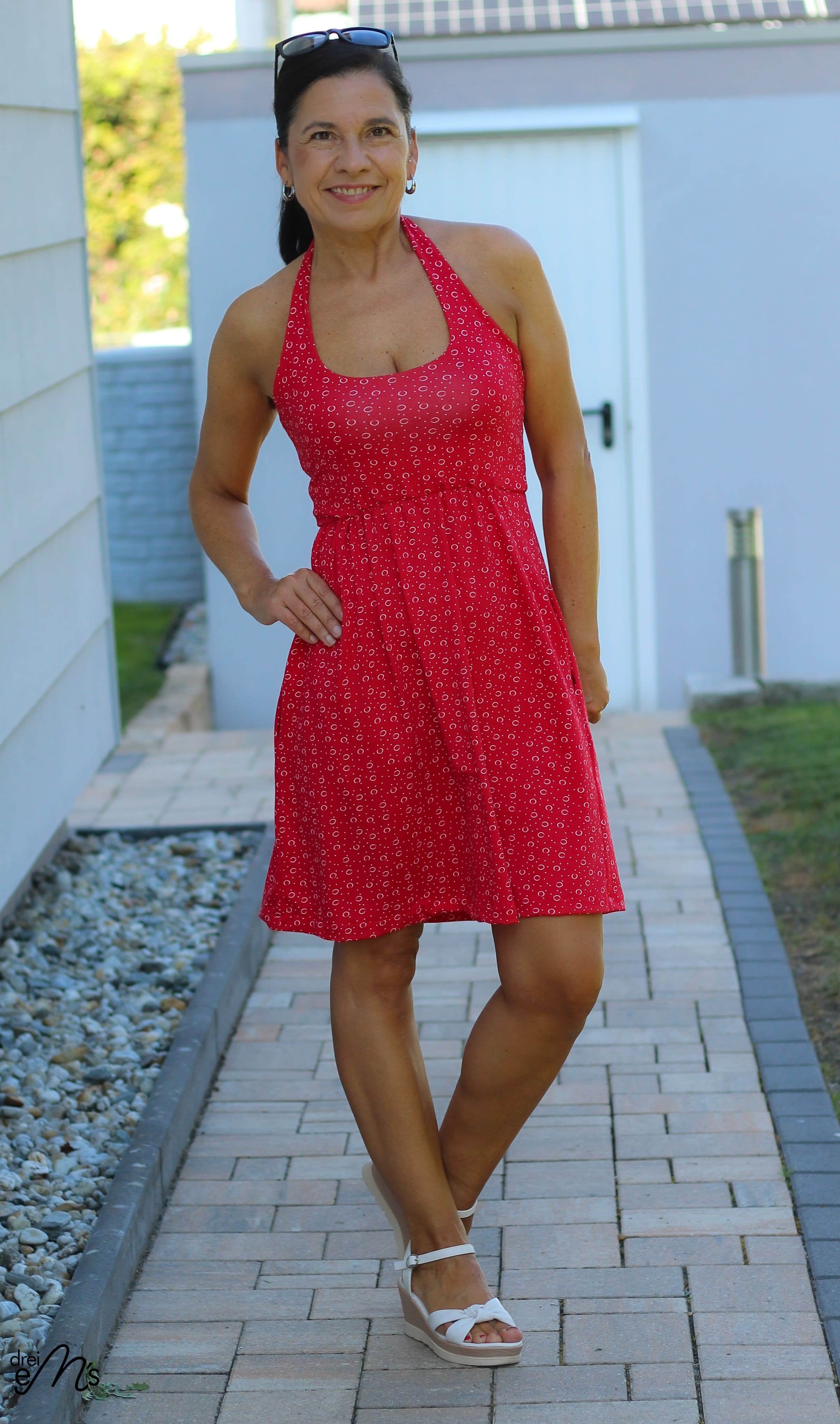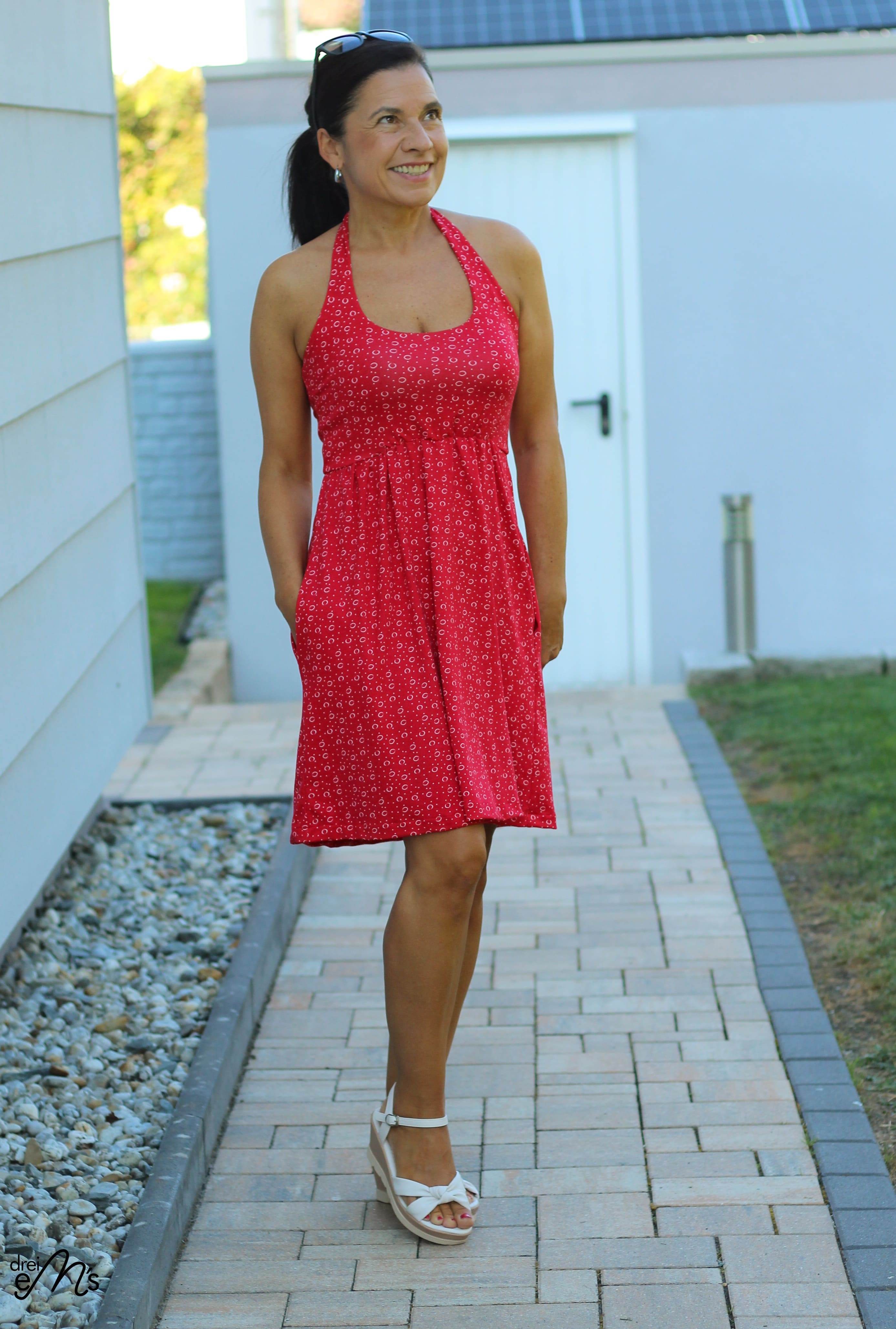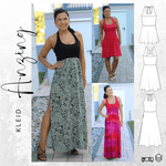 ANZING bekommst du in den Größen 32-50. Der Schnitt enthält 3 Längen (mini, midi, maxi) und optional Nahttaschen. Das Oberteil wird gedoppelt, somit hast du keine lästige Außennaht. Du kannst zwischen einem Neckholderoberteil oder einen Oberteil welches im Rücken gekreuzt genäht wird entscheiden. Das Rockteil enthält 2 Weiten und du kannst es optional mit einem, zwei oder keinem Schlitz nähen.