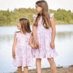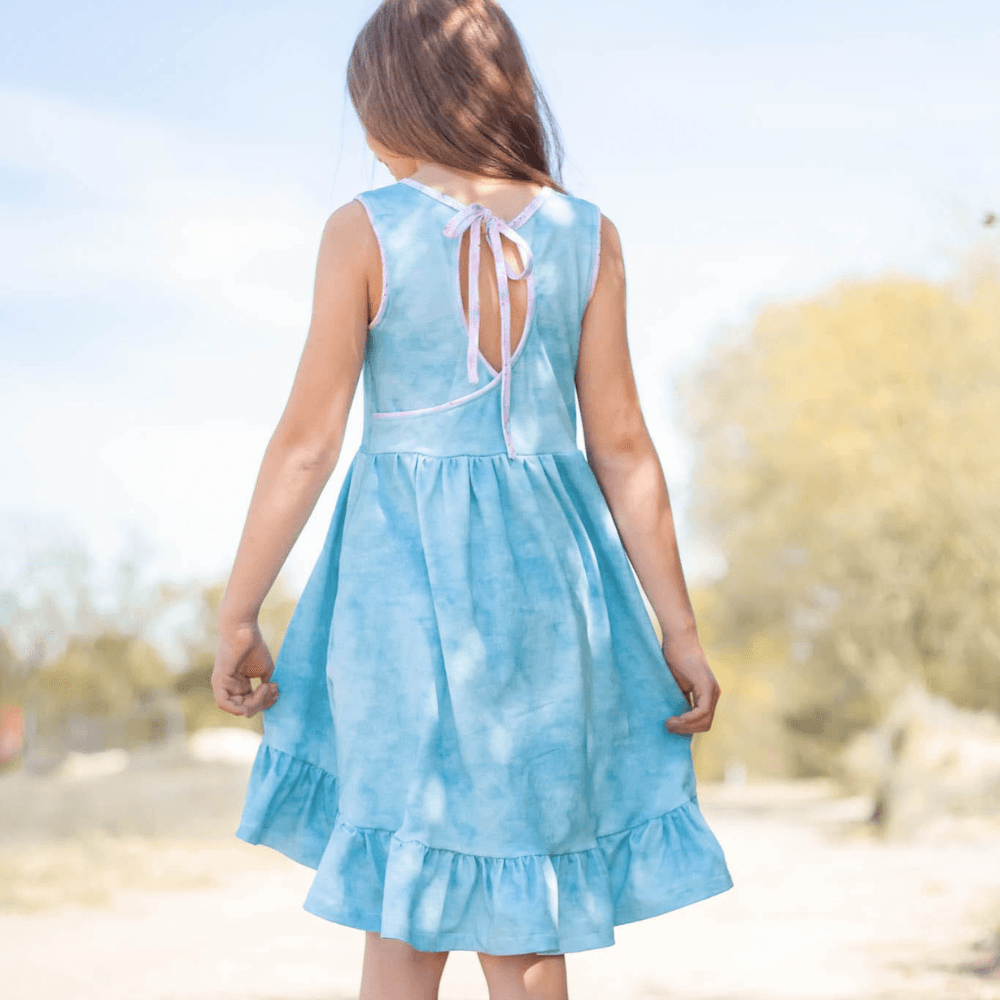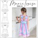 „Marie-Louise ärmellos“ ist ein verspieltes Sommerkleid für Mädchen, welches eine digitale Nähanleitung mit Schnittmuster beinhaltet.