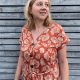 Die Mirella ist auf Jersey ausgelegt, betont die Figur und kreiert einen lässigen Look. Die Knopfleiste kann wahlweise als echte Knopfleiste oder als fake Knopfleiste genäht werden. Die Mirella erscheint in zwei Längen (oberschenkel- und knielang) und mit seitlichem Schlitz. Die Taille wird mit einem Gürtel zusätzlich betont.
