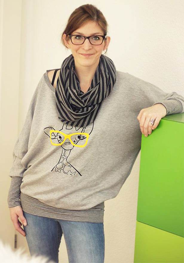 Gula ist ein Fledermauskleid mit engen Bündchen und weiten Ärmeln, das gekürzt auch als Shirt, T-Shirt oder Pullover angefertigt werden kann. Ob elegant, sportlich, sommerlich oder kuschelig warm Gula kann aus jedem dehnbaren Stoff und für jeden Anlass genäht werden und ist zu jeder Jahreszeit tragbar: Zu Leggins oder Jeans oder als Kleid. Ohne Ärmel- und Saumbündchen genäht wird Gula zu einem lässigen Shirt mit 3/4-Ärmeln.