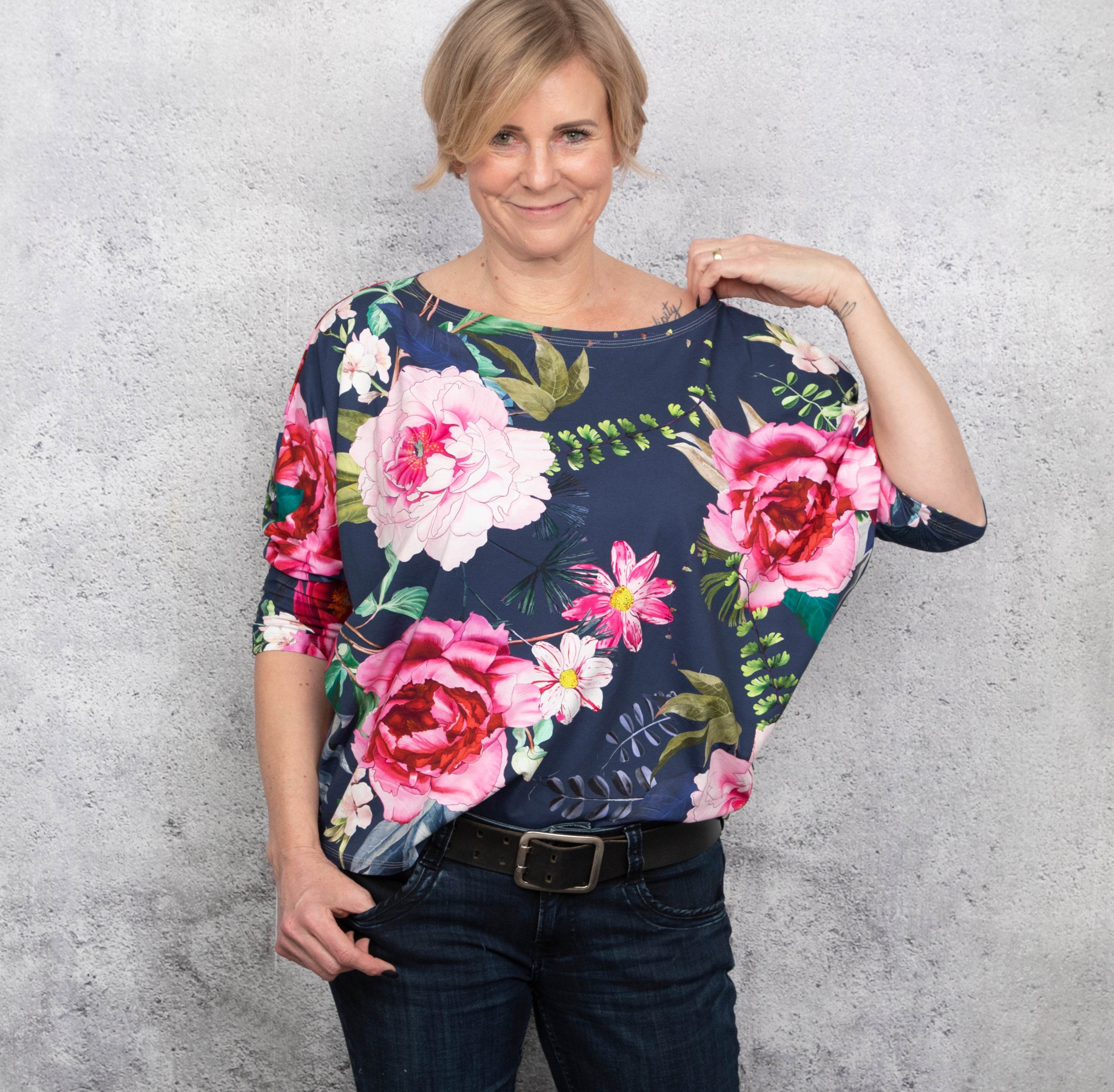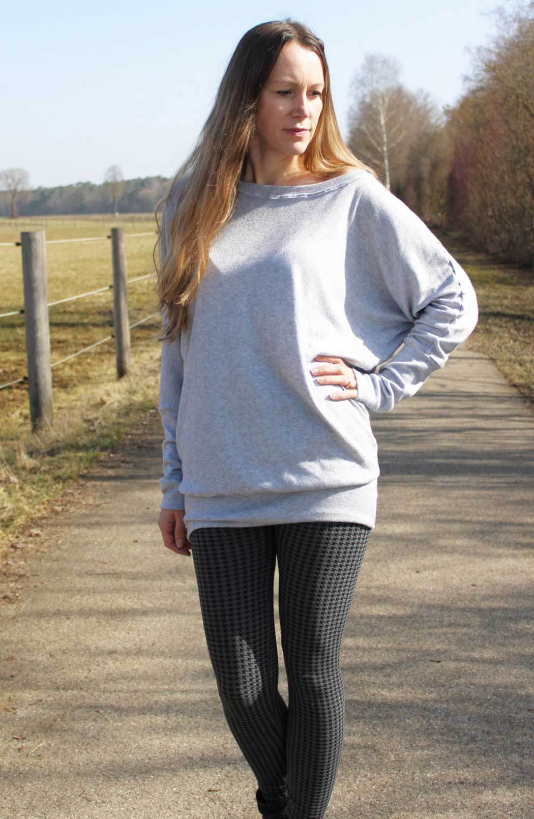 Schnittmuster zum Nähen eines Fledermaus-Shirts oder -Kleides aus dehnbaren Stoffen