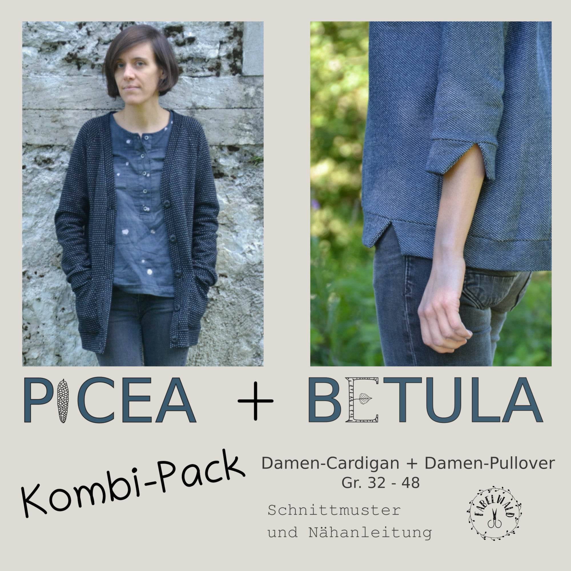 Der Pullover BETULA und der Cardigan PICEA bauen auf demselben locker sitzenden Grundschnitt mit Raglanärmeln auf. Hier bekommst Du beide E-Books im Kombi-Pack zu einem günstigeren Preis.