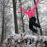 Das »LaBasic Longsleeve« ist ein vielseitiges Shirt, das sowohl schlicht als auch mit raffinierten sportlichen Teilungen genäht werden kann. Die vordere Teilung ermöglicht es, unterschiedliche Stoffe zu kombinieren und damit eine figurbetonte Silhouette zu schaffen. Für kalte Tage kannst du das Longsleeve mit einem halsnahen Ausschnitt nähen, während der luftigere Ausschnitt perfekt für sportliche Aktivitäten ist. Besonders praktisch sind die extra langen Ärmelbündchen mit Daumenlöchern, die im Winter für zusätzlichen Komfort und Wärme sorgen.