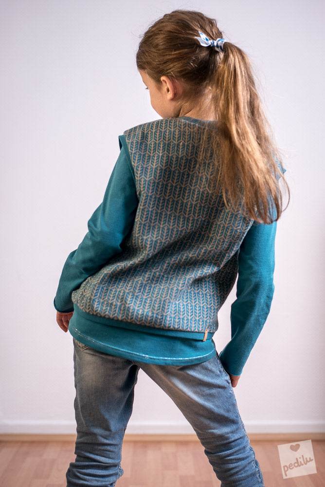 Das »LaWestchen« kann mit allen nicht ganz so weiten Oberteilen und Kleidern kombiniert werden. Schau dir auch unbedingt den Schnitt »LaWeste« für Damen an – für einen Mini-Me-Partnerlook.