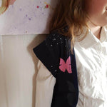 50 cm (Größe 92–122 ), 95 cm (Größe 128–158 ) mit Schalkragen und Flügelärmeln – (bei einer Stoffbreite von 140 cm)