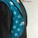 Das »LaWestchen« ist eine offene Weste aus Maschenware mit leicht überschnittenen Schultern, die sich perfekt für den Lagenlook eignet. Sie ist ein vielseitiges Kleidungsstück, das je nach Stoff- und Stilwahl sowohl chic oder sportlich wirken kann. Nicht nur Mädchen, sondern auch coole Jungs können diese Weste tragen. Die Weste ist schnell genäht, da sie keine Seitennähte hat. Nähe in der kalten Jahreszeit eine kuschelige Version mit Schalkragen. Oder gib der Weste mit Flügelärmeln einen ganz anderen Look. Brauchst du vielleicht einen Kombi-Partner für ein Kleid? Dann eignet sich die alternative, kürzere Bolero-Länge perfekt dafür.