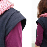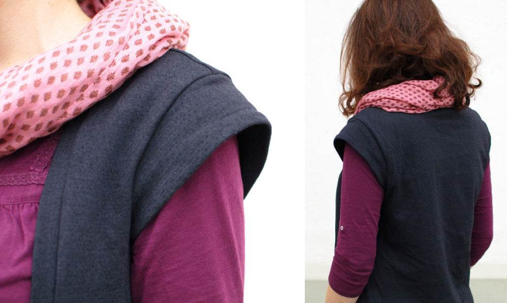 Die »LaWeste« ist eine offene Weste aus Maschenware mit leicht überschnittenen Schultern, die sich perfekt für den Lagenlook eignet. Sie ist ein vielseitiges Kleidungsstück, das je nach Stoff- und Stilwahl sowohl chic, sportlich als auch partytauglich wirken kann. Die Weste ist schnell genäht, da sie keine Seitennähte hat. Nähe in der kalten Jahreszeit eine kuschelige Version mit Schalkragen. Oder gib der Weste mit Flügelärmeln einen ganz anderen Look. Brauchst du vielleicht einen Kombi-Partner für ein Kleid? Dann eignet sich die alternative, kürzere Bolero-Länge perfekt dafür.
