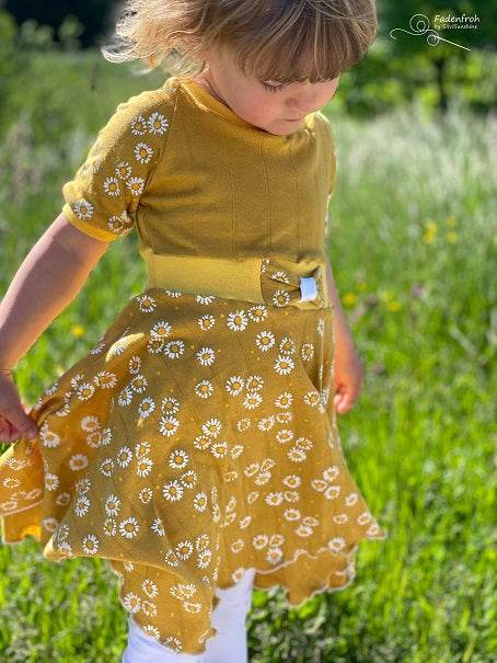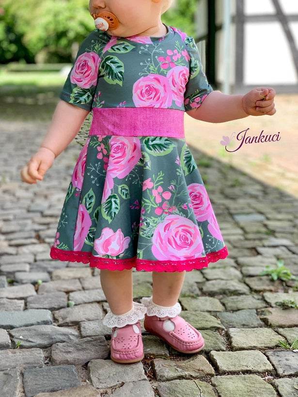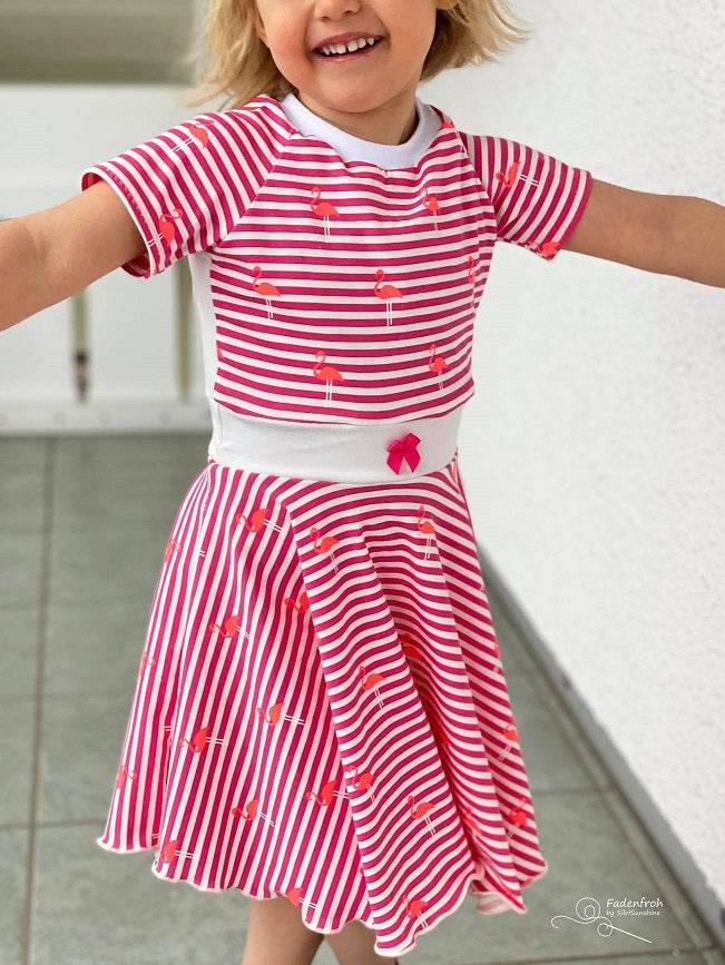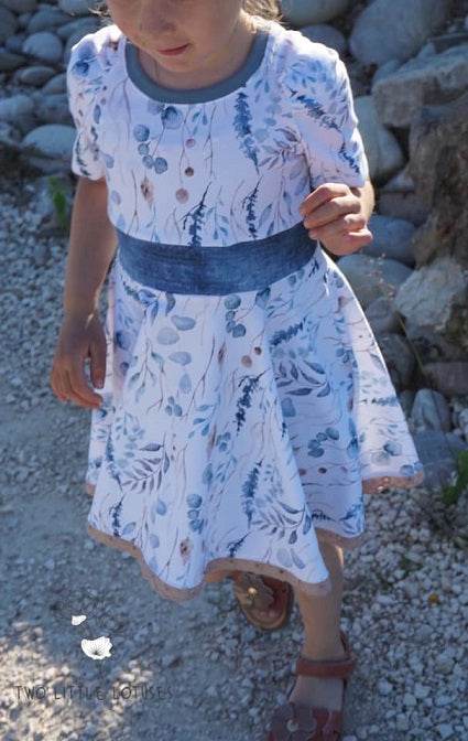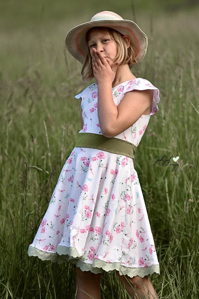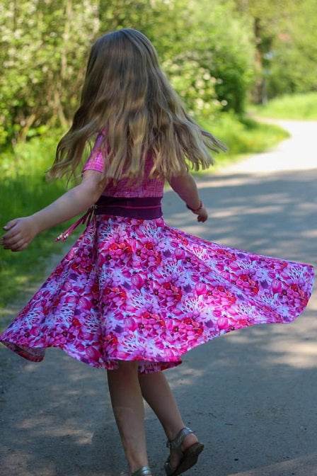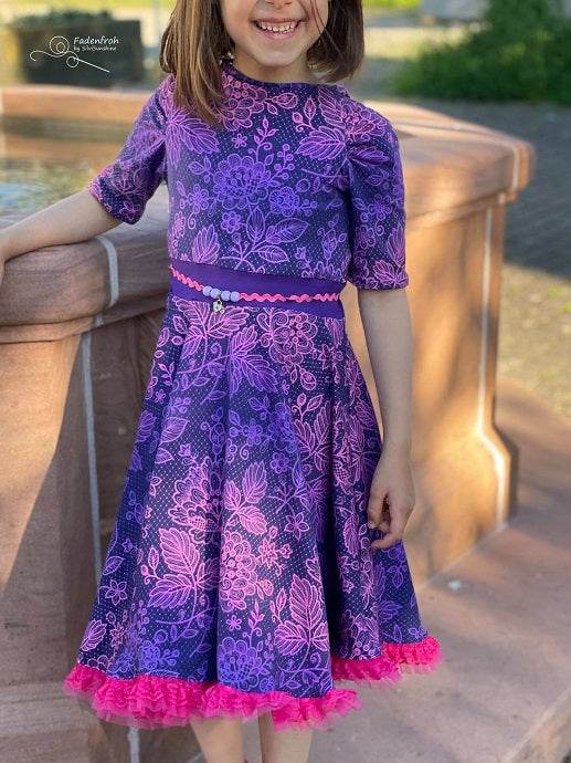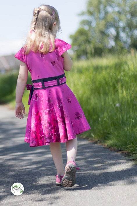 Neben dem unglaublich süßen Look bringt es so viele wundervolle Möglichkeiten mit, dass es dir schwer fallen wird, dich zu entscheiden. Lillibee besteht aus einem Raglanoberteil, einem Mittelteil und einem Tellerrock. Es fällt nicht zu lang aus und ist perfekt für den Sommer oder alle anderen Jahreszeiten. Das Oberteil kannst du ganz nach deinem Geschmack entweder mit normalen langen oder kurzen Raglanärmeln kombinieren oder die zauberhaft-ausgefallene Variante mit Raffung nähen! Eine weitere Option sind die Flügelärmel. In diesem Ebook findest du viele tolle Anregungen um Lillibees Mittelteil zu einem Highlight zu gestalten, das jedes Kleid aufwertet. Neben den genannten Varianten sind die Möglichkeiten des Schnittmusters noch lange nicht erschöpft! Lillibee macht nämlich auch als Rock, Bolero oder als Crop-Top/Shirt eine tolle Figur! Dazu benötigst du keine weiteren Schnitteile, nur die Nähweise ändert sich! Im Ebook findest du alles genau erklärt, sodass ich sicher bin, dass du viel Freude daran haben wirst, verschiedene Lillibees zu nähen.