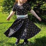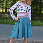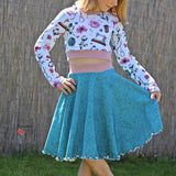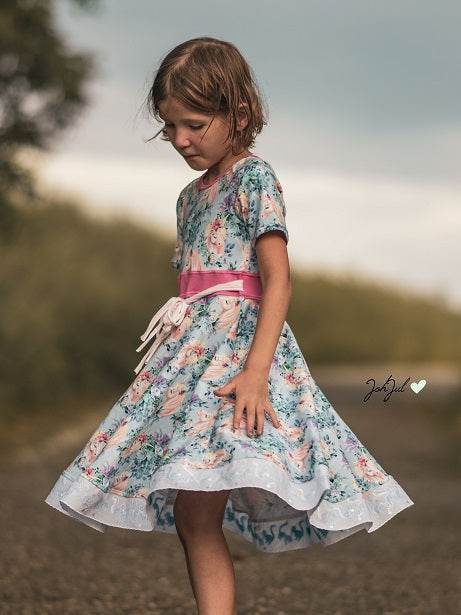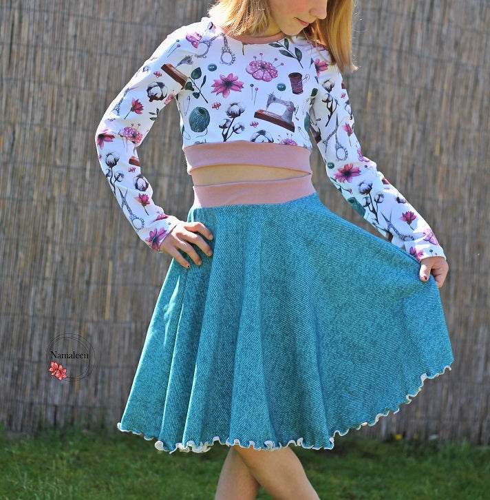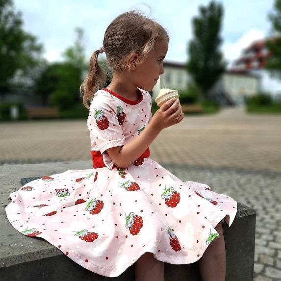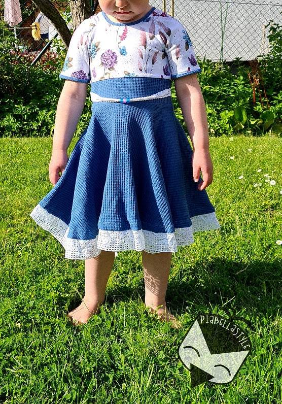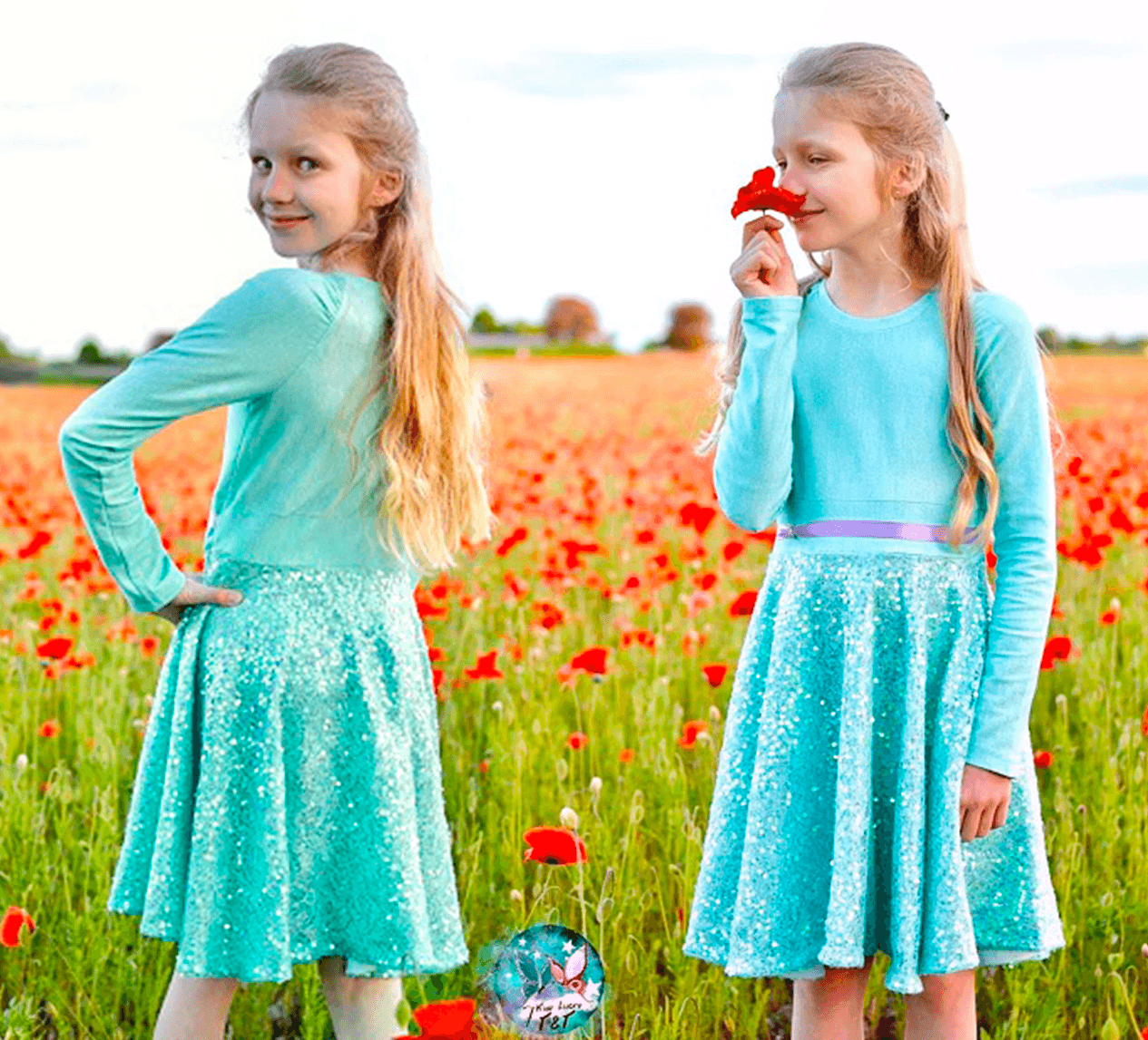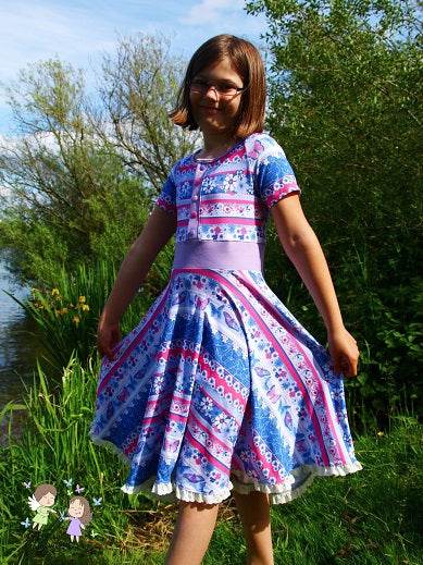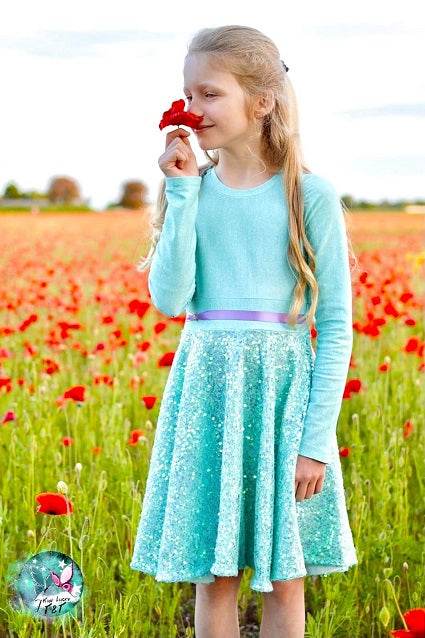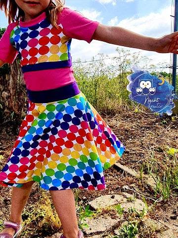 Neben dem unglaublich süßen Look bringt es so viele wundervolle Möglichkeiten mit, dass es dir schwer fallen wird, dich zu entscheiden. Lillibee besteht aus einem Raglanoberteil, einem Mittelteil und einem Tellerrock. Es fällt nicht zu lang aus und ist perfekt für den Sommer oder alle anderen Jahreszeiten. Das Oberteil kannst du ganz nach deinem Geschmack entweder mit normalen langen oder kurzen Raglanärmeln kombinieren oder die zauberhaft-ausgefallene Variante mit Raffung nähen! Eine weitere Option sind die Flügelärmel. In diesem Ebook findest du viele tolle Anregungen um Lillibees Mittelteil zu einem Highlight zu gestalten, das jedes Kleid aufwertet. Neben den genannten Varianten sind die Möglichkeiten des Schnittmusters noch lange nicht erschöpft! Lillibee macht nämlich auch als Rock, Bolero oder als Crop-Top/Shirt eine tolle Figur! Dazu benötigst du keine weiteren Schnitteile, nur die Nähweise ändert sich! Im Ebook findest du alles genau erklärt, sodass ich sicher bin, dass du viel Freude daran haben wirst, verschiedene Lillibees zu nähen.