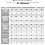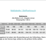 Stoffverbrauch bei einer Stoffbreite von 1,50m : Je nach Variante und Größe liegt dieser zwischen 1,25m und 2,15m zzgl. Bündchen