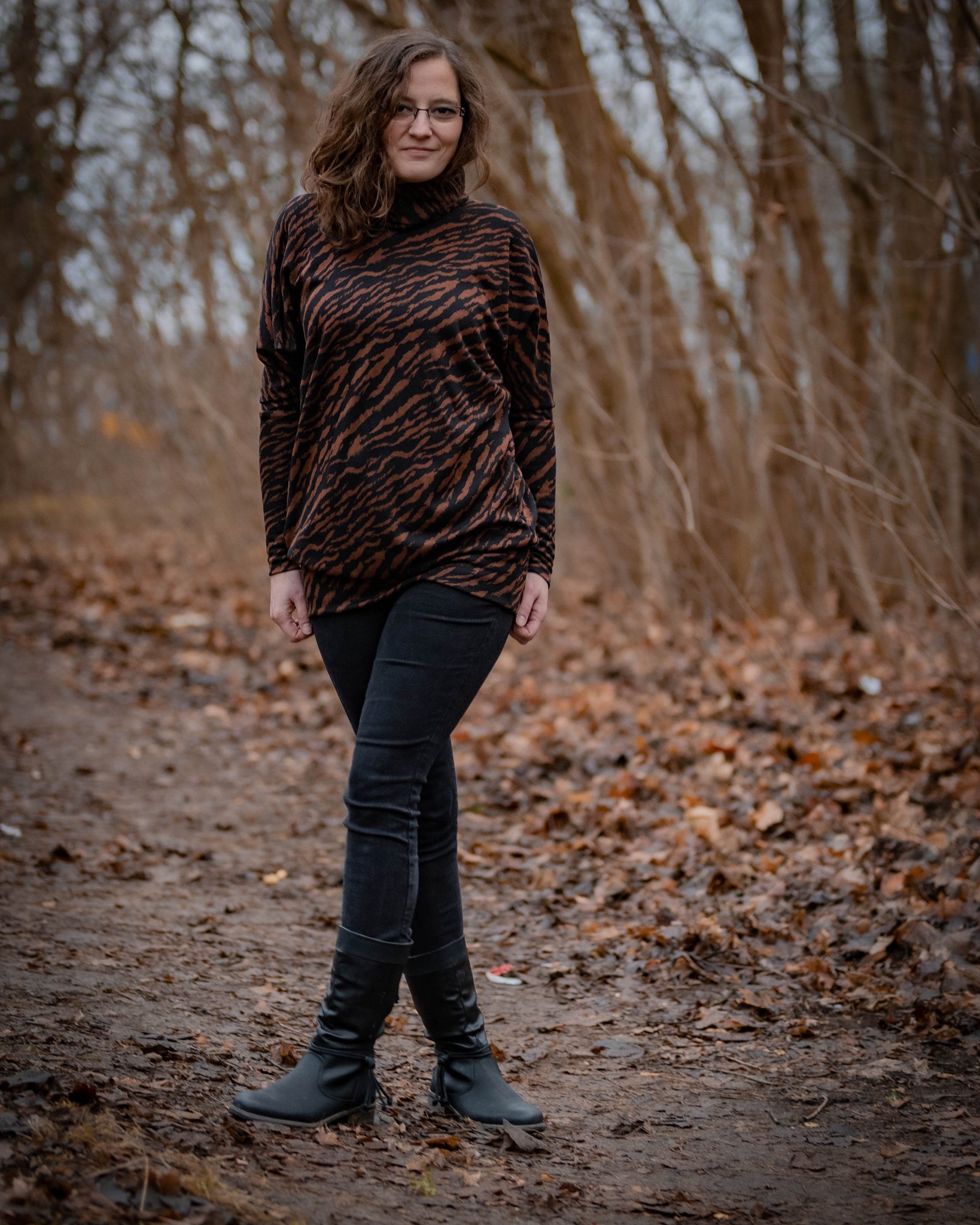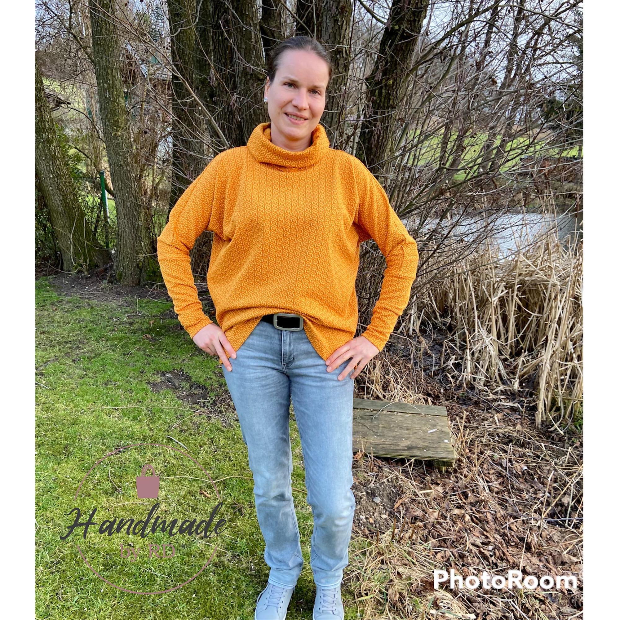Das BlueCosyShirt ist der perfekte Pullover für gemütliche Tage. Mit seinem kuscheligen Kragen und der lockeren Passform wird es garantiert dein neuer Liebling im Kleiderschrank. Du kannst das Shirt in 3 Längen und mit 2 verschiedenen Kragenweiten nähen, von Croptop bis Longshirt. Die Ärmel sind mit langen Bündchen versehen und für einen extra Hingucker kannst du eine Knopfleiste an der Ärmelnaht anbringen.